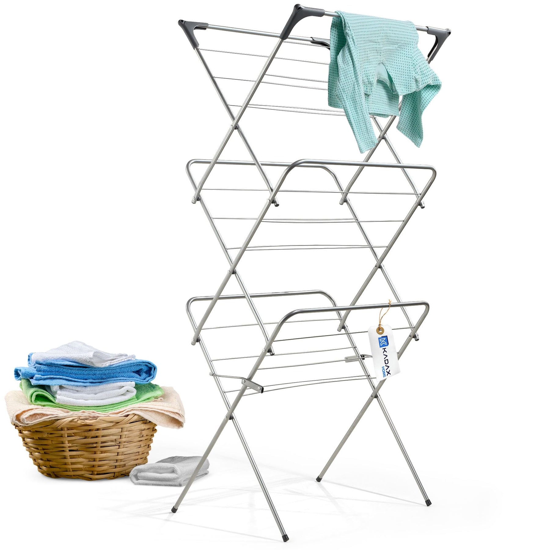Einzelheiten: Unser Wäschetrockner ist sehr robust und wird Ihnen und allen Haushaltsmitgliedern lange von Nutzen sein. Der vertikale Ständer ist aus robustem, rostbeständigem Metall und Kunststoff gefertigt. Die Eigenschaften beider Materialien sorgen dafür, dass er gegen Witterungseinflüsse resistent ist. Außerdem ist der Kleidertrockner der Marke KADAX sehr leicht, sodass er überall hin mitgenommen oder verstaut werden kann.
