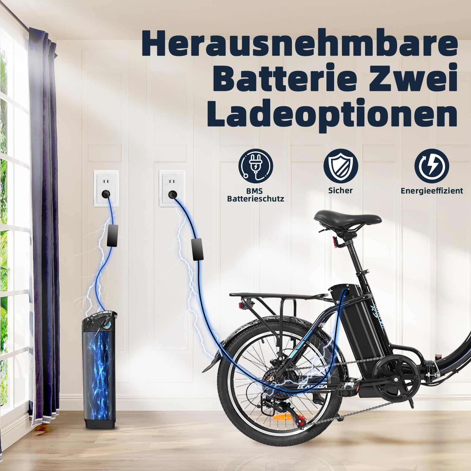 • 【😎Sicherer herausnehmbarer Lithium-Akku】 E-Bike Klapprad 20 zoll sind mit einem 36V 13Ah Hochleistungs-Lithium-Ionen-Akku mit einer Kapazität von 468Wh ausgestattet, so dass das faltbare E-Bike mit einer einzigen Ladung 45-70 KM gefahren werden kann. Unsere Akkus sind außerdem abnehmbar, so dass Sie die Akkus an Ihrem E-Bike problemlos aufladen können.