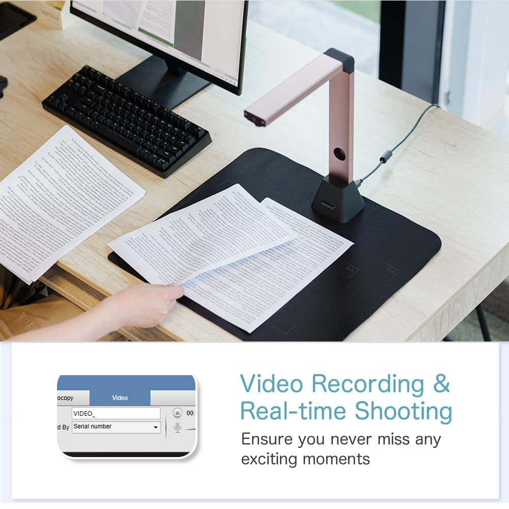 • Leistungsstarke Softwarekonfiguration: Ausgestattet mit leistungsstarker Software, einschließlich Videoaufzeichnung und Echtzeitprojektion, ermöglicht dieser Bücher Scanner mühelose Dokumentenaufzeichnung und Präsentation. Die automatische kontinuierliche Aufnahmefunktion des overhead Scanner ermöglicht aufeinanderfolgende Aufnahmen. Die Timerfunktion ermöglicht es Benutzern, das Aufnahmeintervall entsprechend den Anforderungen anzupassen und so auf unterschiedliche Szenenanforderungen einzugehen.