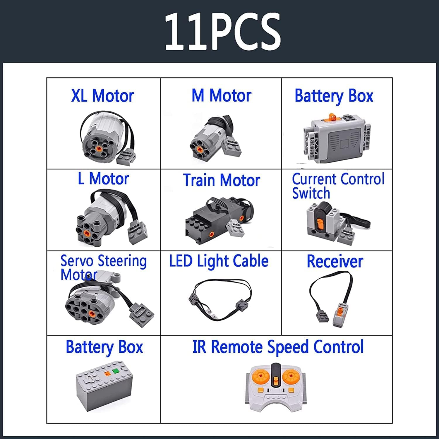 - Hochgeschwindigkeits- und Großdrehmoment-Bausteinmotor-Netzteil-Kit, 11-teiliges Leistungsset: Einschließlich: 1 * M-Motor, 1 * L-Motor, 1 * XL-Motor, 1 * Zugmotor, 1 * Servolenkmotor, 2 * Batteriekasten , 1 * Lichtkabel, 1 * Fernsteuerung, 1 * Stromsteuerschalter, 1 * Empfänger