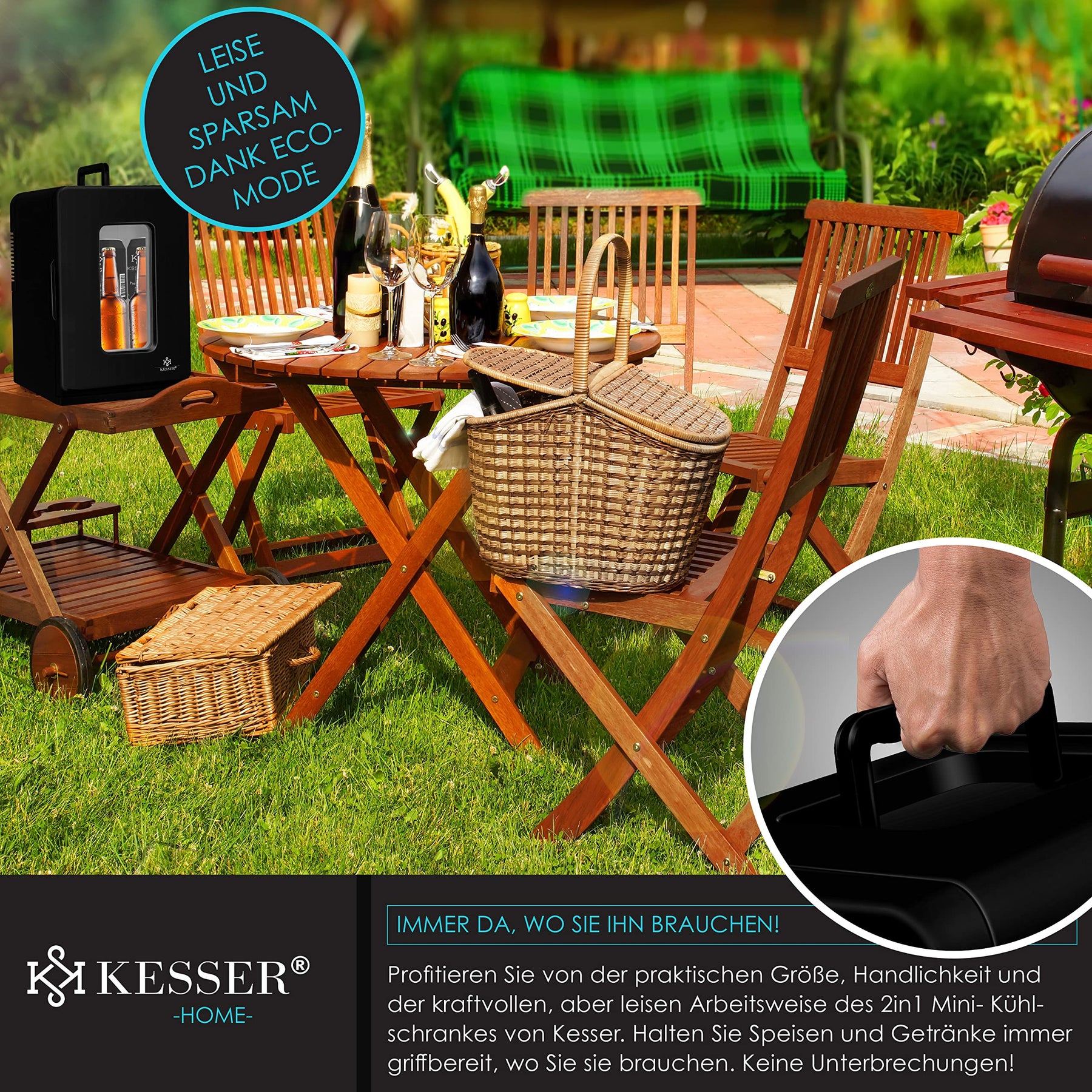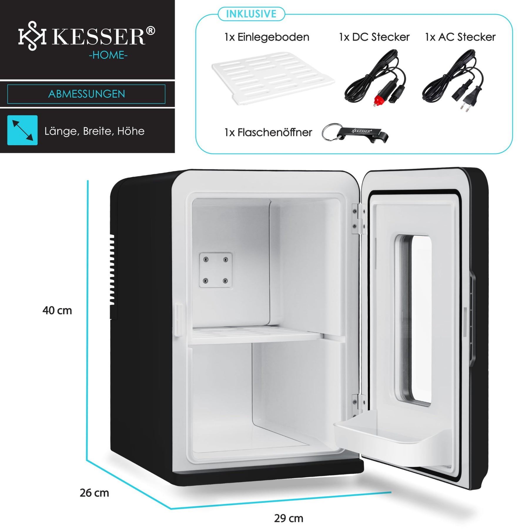 KESSER® 2in1 Mini Kühlschrank Kühlbox 15 Liter Kühl und Heizfunktion Tragbarer AC DC 220-240V/12V Steckdose und Zigarettenanzünder Warmhaltebox Thermobox Auto Büros Zimmer Camping Garten Schwarz
