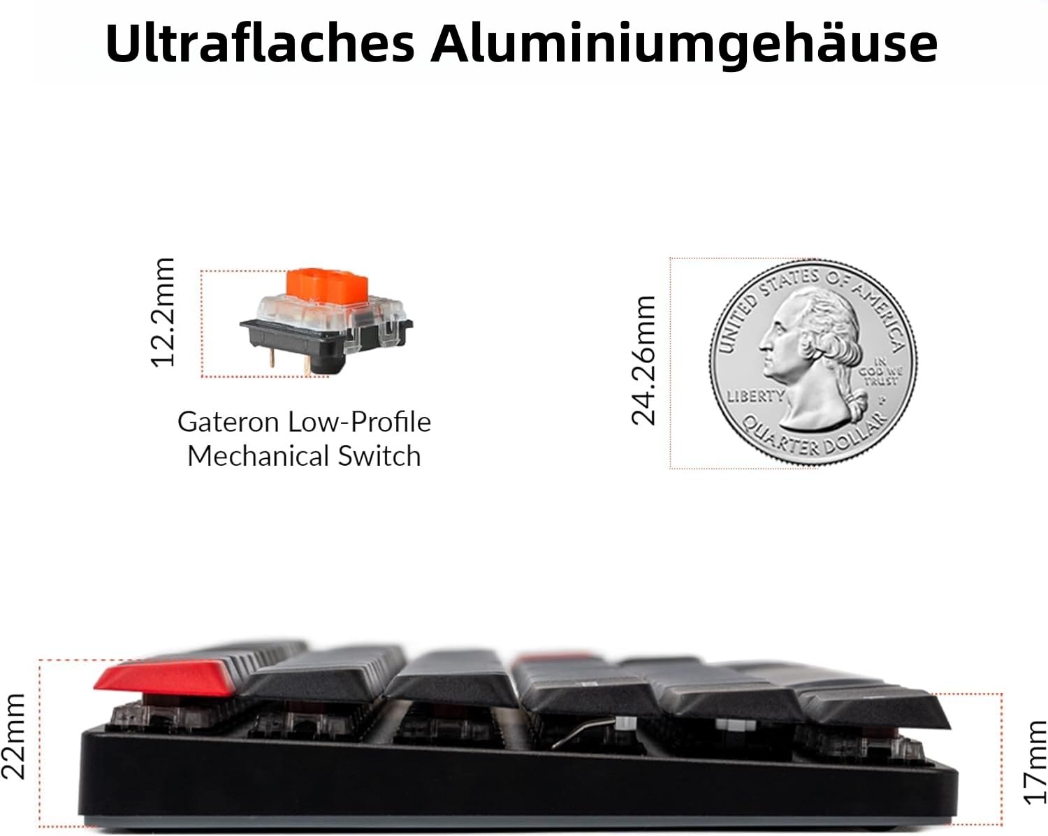 • Ultraflache kabellose mechanische Tastatur nach Maß: Die K3 Pro ist die erste kabellose mechanische Tastatur mit niedrigem Profil und QMK/VIA-Fähigkeit für unendliche Möglichkeiten. Jeder kann alle Tasten oder Makrobefehle auf dem 75 % kompakten Layout durch VIA beherrschen. Sie verfügt über LSA-Profil-Tastenkappen (Low Profile Spherical Angled) für Windows und macOS.