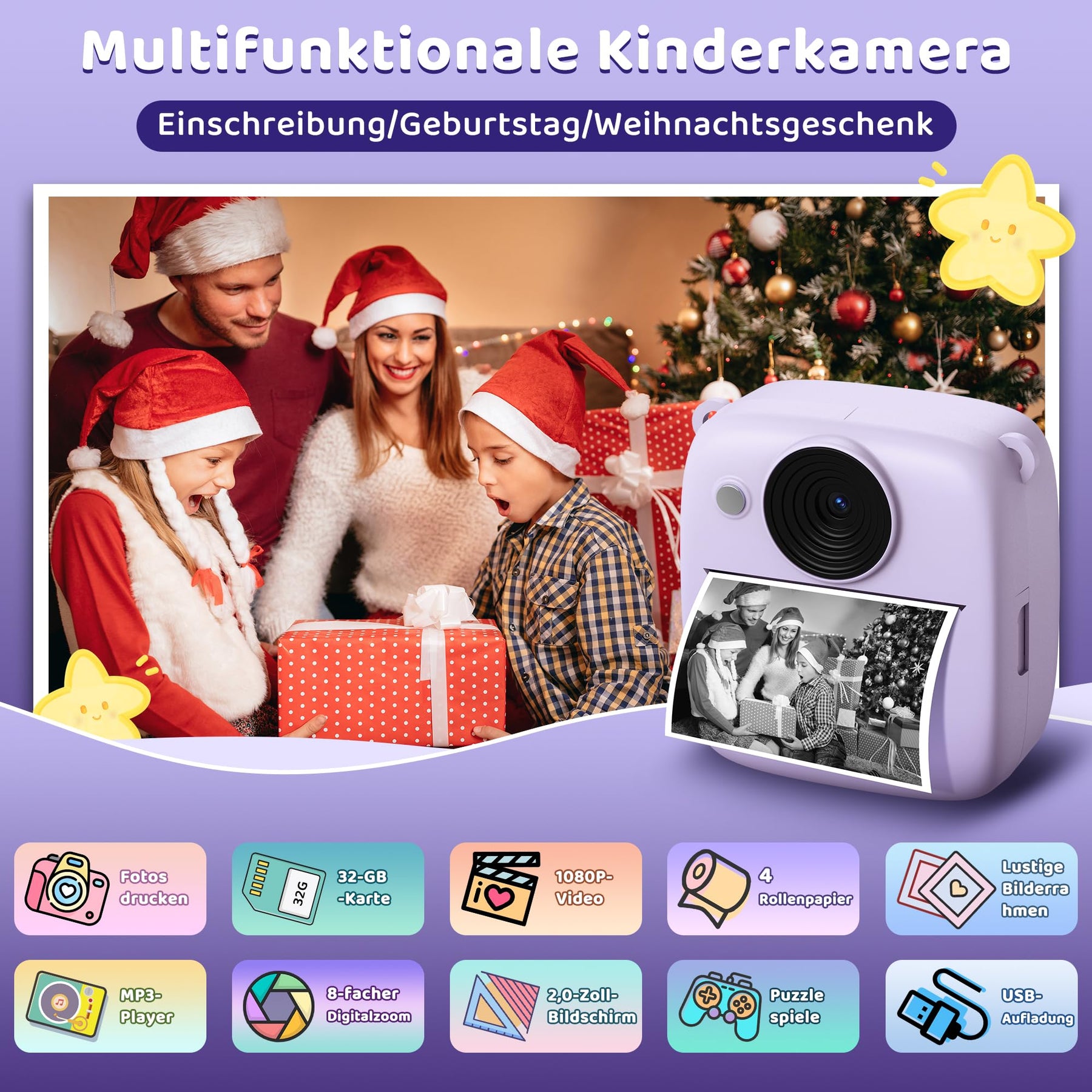 • 🎁【Multifunktionale Kinderkamera】Die multifunktionale Kinderkamera Bietet Kamera Kinder Sofortdruck, 1080P-Video, Verfügt über Einen 2,0-Zoll-Bildschirm, 8-Fachen Digitalzoom und Verschiedene Zusatzfunktionen wie Zeitrafferaufnahmen, Serienaufnahmen, MP3, Spiele und Filterrahmenvideos Aufnahme. Neben Verschiedenen Filtern, Aufklebern und Fotorahmen Kann es den Vielfältigen Bedürfnissen der Kinder Gerecht Werden, ihren Erfahrungssinn Steigern und ihr Interesse an der Fotografie Wecken. Gleichzeitig Können Eltern und Kinder Gemeinsam Schöne Erinnerungen Schaffen.