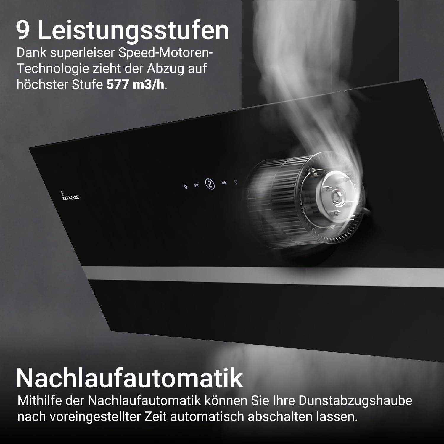 - Frischluft: Die 9 Gebläsestufen der Dunstabzugshaube EASY909SHCM lassen auch den hartnäckigsten Dünsten und Gerüchen nicht den Hauch einer Chance und beseitigen diese ohne große Mühe.