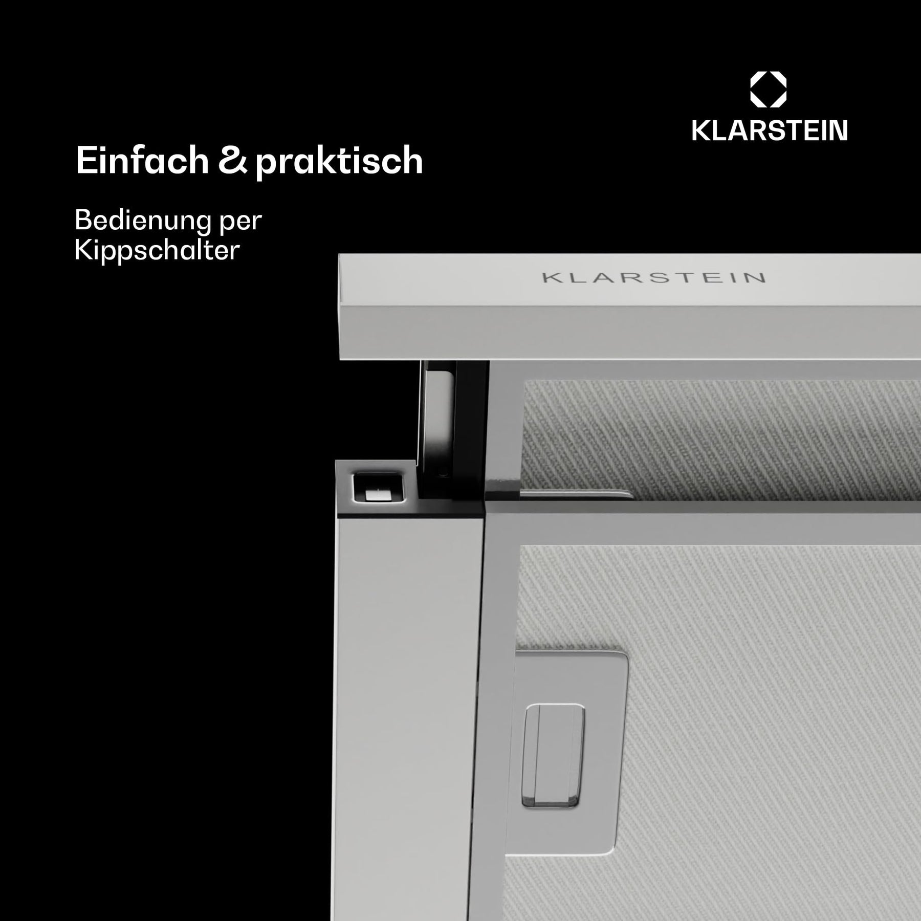 Einzelheiten: Klarstein Dunstabzugshaube 60cm, Abluft-Dunstabzugshaube mit Spülmaschinenfestem Filter aus Aluminium, Leise Abzugshaube Abluft, Effiziente Wandhauben mit 305 m³/h Luftstrom, LEDs & Touch Controls