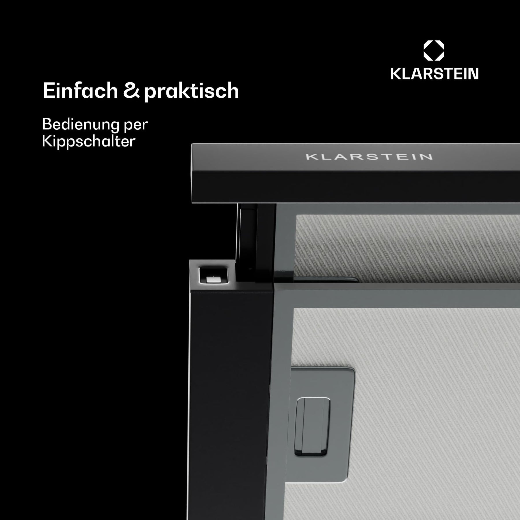Einzelheiten: Klarstein Dunstabzugshaube 60cm, Abluft-Dunstabzugshaube mit Spülmaschinenfestem Filter aus Aluminium, Leise Abzugshaube Abluft, Effiziente Wandhauben mit 305 m³/h Luftstrom, LEDs & Touch Controls