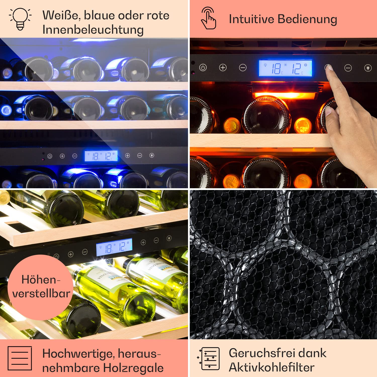 • WEINKÜHLSCHRANK MIT 2 ZONEN: In diesem 129-Liter-Flaschenkühlschrank kannst du bis zu 43 Flaschen deiner besten Weinflaschen lagern. Diese Weinkühlschränke sorgen für die richtige Temperatur, damit sich der Geschmack und das Aroma entfalten können.