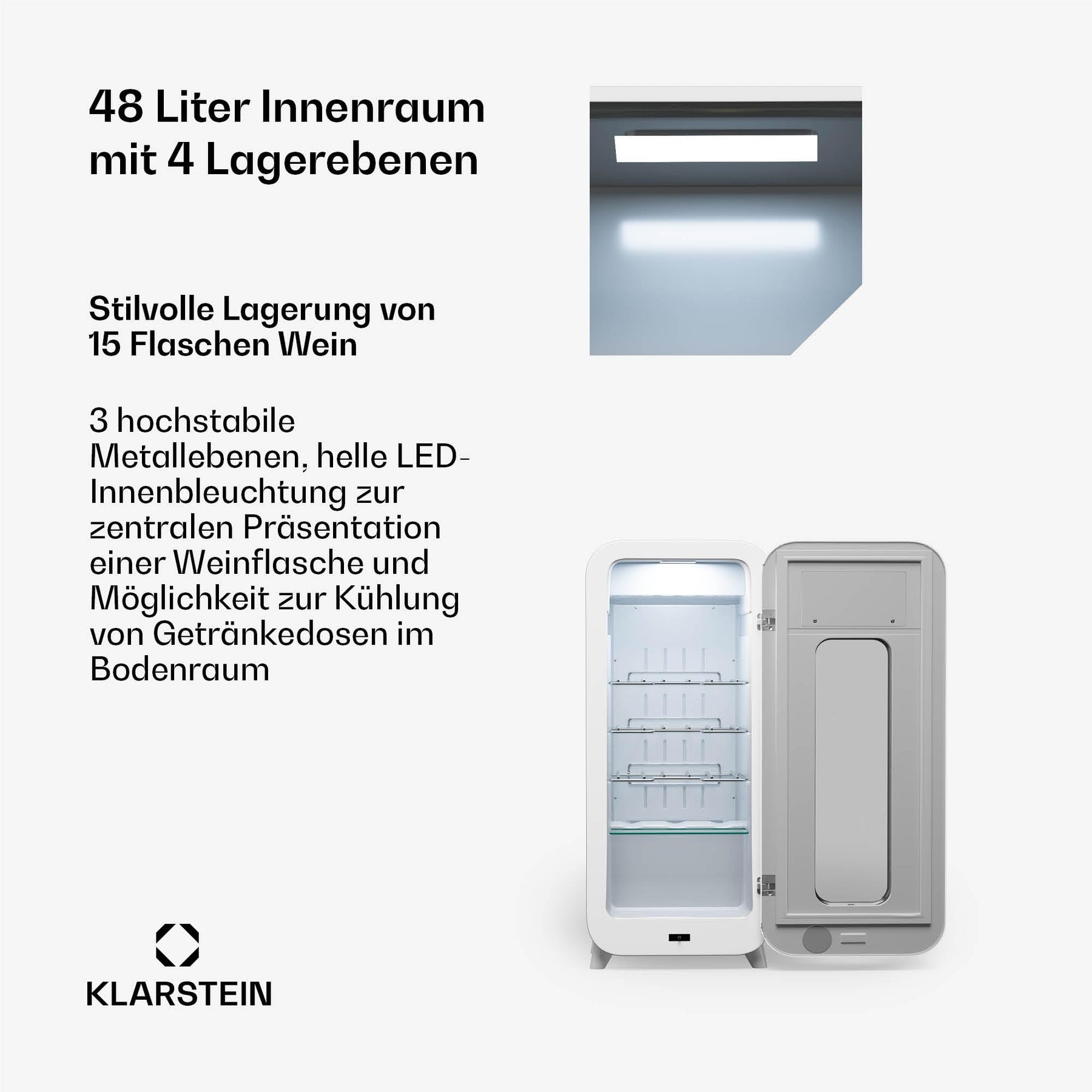 Einzelheiten: Klarstein Shirley Slim Freistehender Weinkühlschrank 1 Zone, Getränkekühlschrank Klein, Kleiner Weinschrank, Wein-Kühlschrank Klein mit Glastür, Indoor/Outdoor Flaschenkühlschrank mit Kippbaren Ablagen, Wine Fridge für 15 Flaschen
