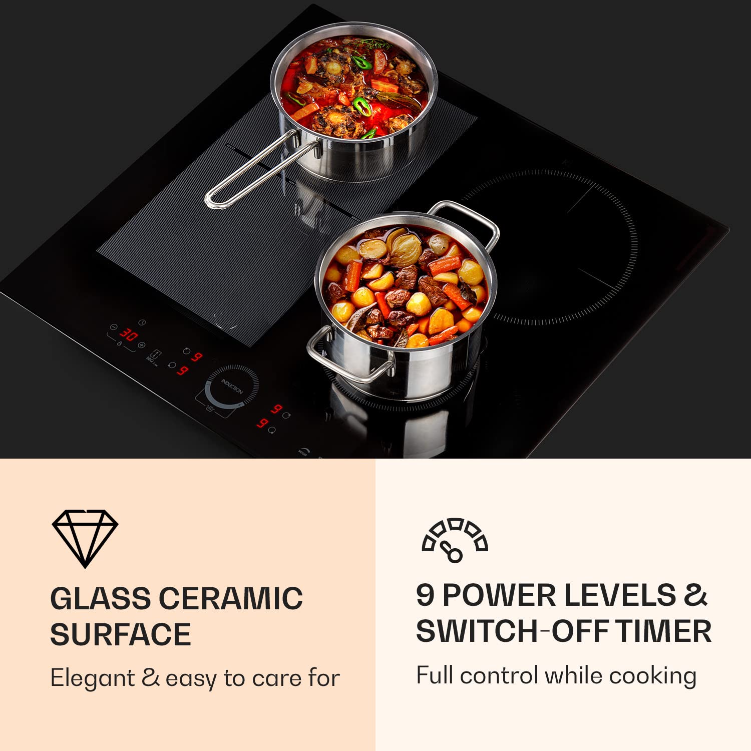• SICHERHEIT GEHT VOR: Unsere Kochfelder werden dich entspannen. Denn dieses Induktions-Kochfeld verfügt über mehrere Sicherheitsfunktionen wie eine Kindersicherung, einen Überhitzungsschutz, eine Abschaltautomatik und eine Topferkennung.