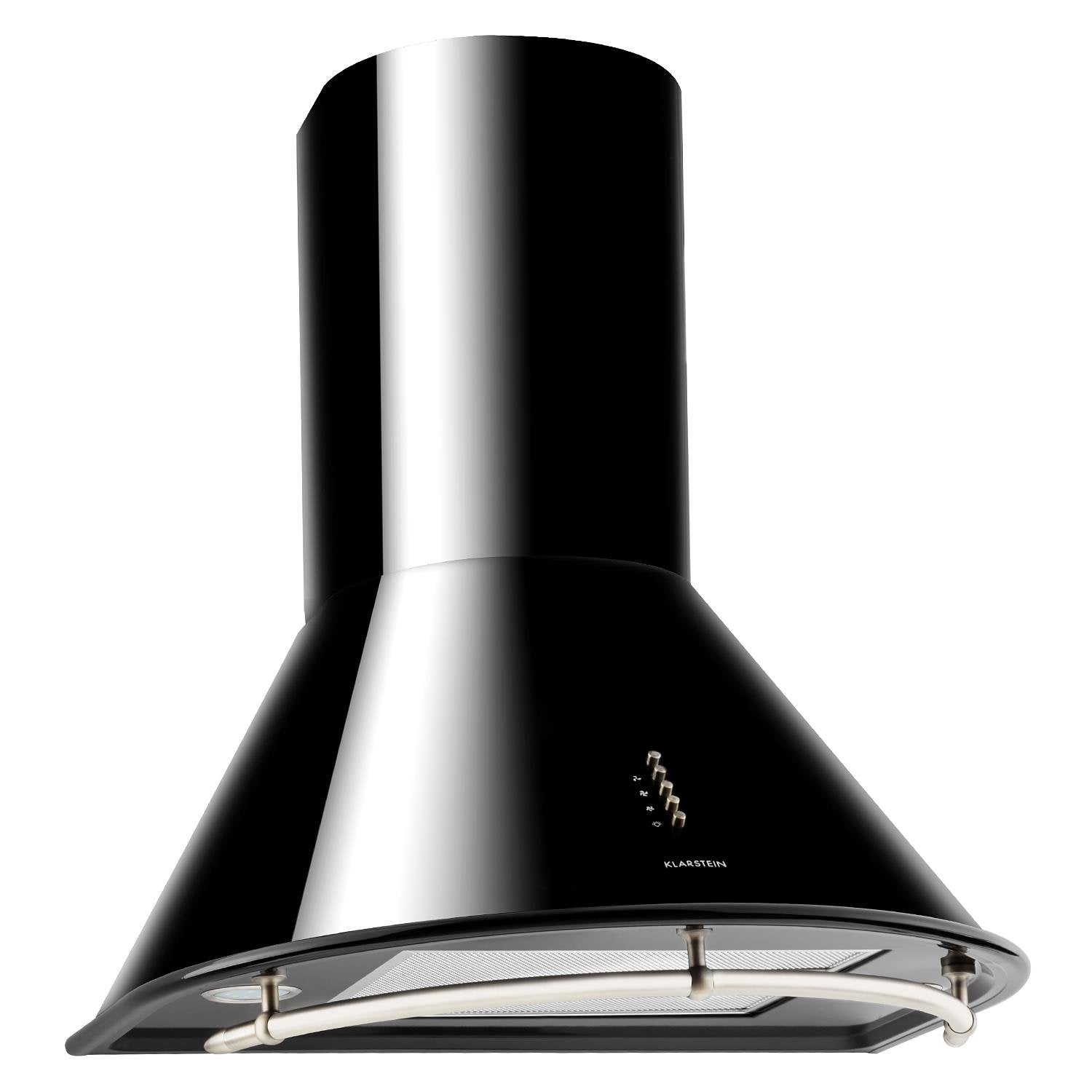 Klarstein Lumio Neo - Retro Dunstabzugshaube, Wandabzugshaube, Abzugshaube, Energieeffizienzklasse B, Breite: 60 cm, Abluft/Umluft, Abluftleistung: 610 m³/h, Edelstahl-Gehäuse, schwarz