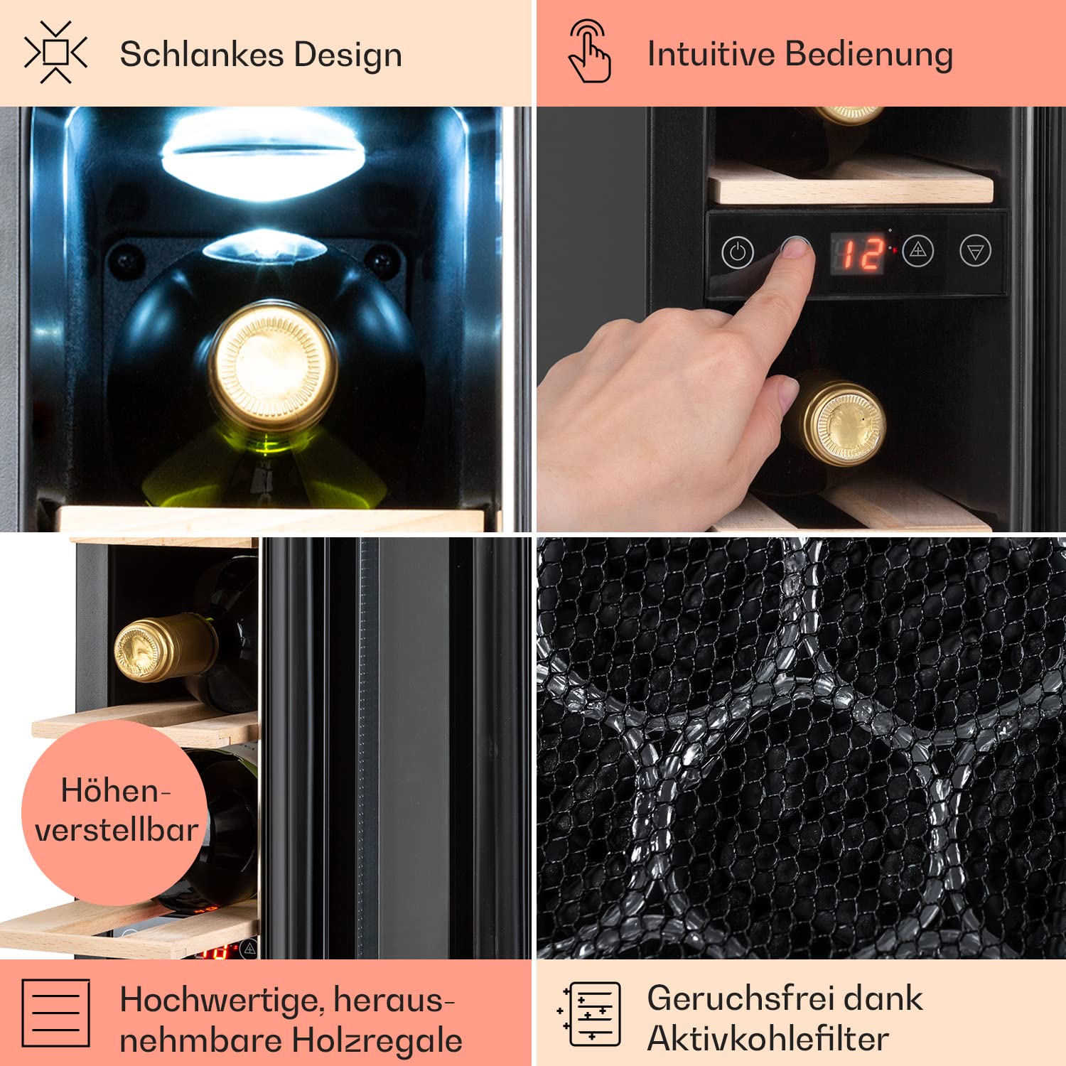• EINFACHE, ELEGANTE BEDIENUNG: Über das Touch-Bedienfeld mit LCD-Display kannst du die Temperatur anpassen, damit jeder Wein auf die perfekte Temperatur eingestellt ist. Der Weinschrank mit Glastür ist klein und dennoch verfügt er über genügend Platz.