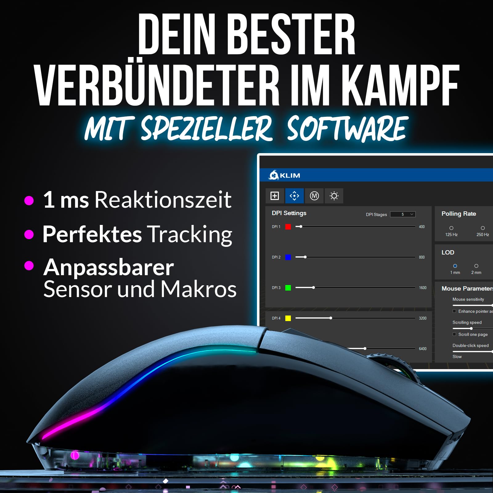 • VÖLLIGE FREIHEIT, UM DAS SPIEL ZU DOMINIEREN. Genieße die Vorteile einer kabellosen Maus und mach dir keine Gedanken mehr über Kabel. Die KLIM Blaze X bietet eine hervorragende Reaktionszeit und Reaktionsfähigkeit, vergleichbar mit jeder kabelgebundenen High-End-Computermaus. Dank ihres präzisen Sensors werden Deine Bewegungen immer perfekt verfolgt, sodass Du Dir in Deinen Spielen einen Vorsprung verschaffen kannst!