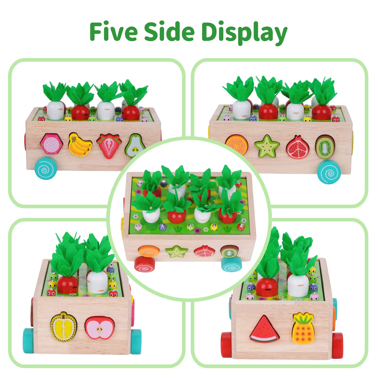 - 【Pädagogisches Stammspielzeug für Kinder】 Ein entzückendes kleines hölzernes Bauernhofspielzeug mit vielen verschiedenen pädagogischen Aspekten, Karottenziehen spielen, Früchte erkennen, Formen zuordnen, Karren schieben, Farben identifizieren, Würmer mit Kaninchen fangen, lagern und klassifizieren. Es ist ein gutes Spielzeug für 2-4 Jahre alte Mädchen und Jungen, mit mehreren Spielmöglichkeiten, um Babys glücklicher zu machen.