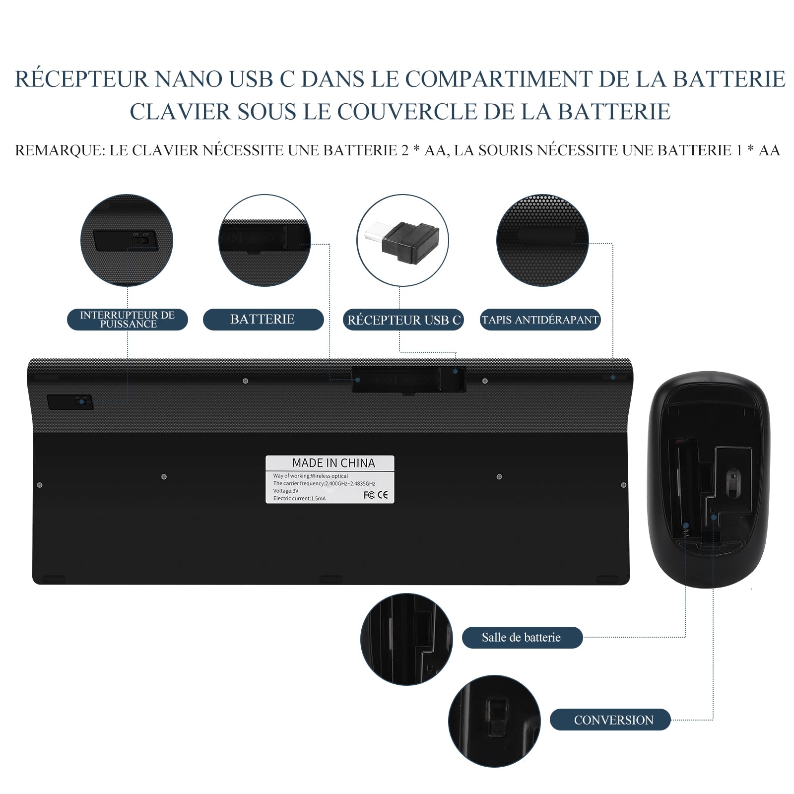 • Kabellose USB-C-Verbindung 2,4 G – praktisch, ohne spezielle Software, kann an alle Geräte mit USB-C-Anschluss angepasst werden, ohne Adapter zu verwenden. Kompatibel mit Mac-Betriebssystemen, Google Chromebook, etc.