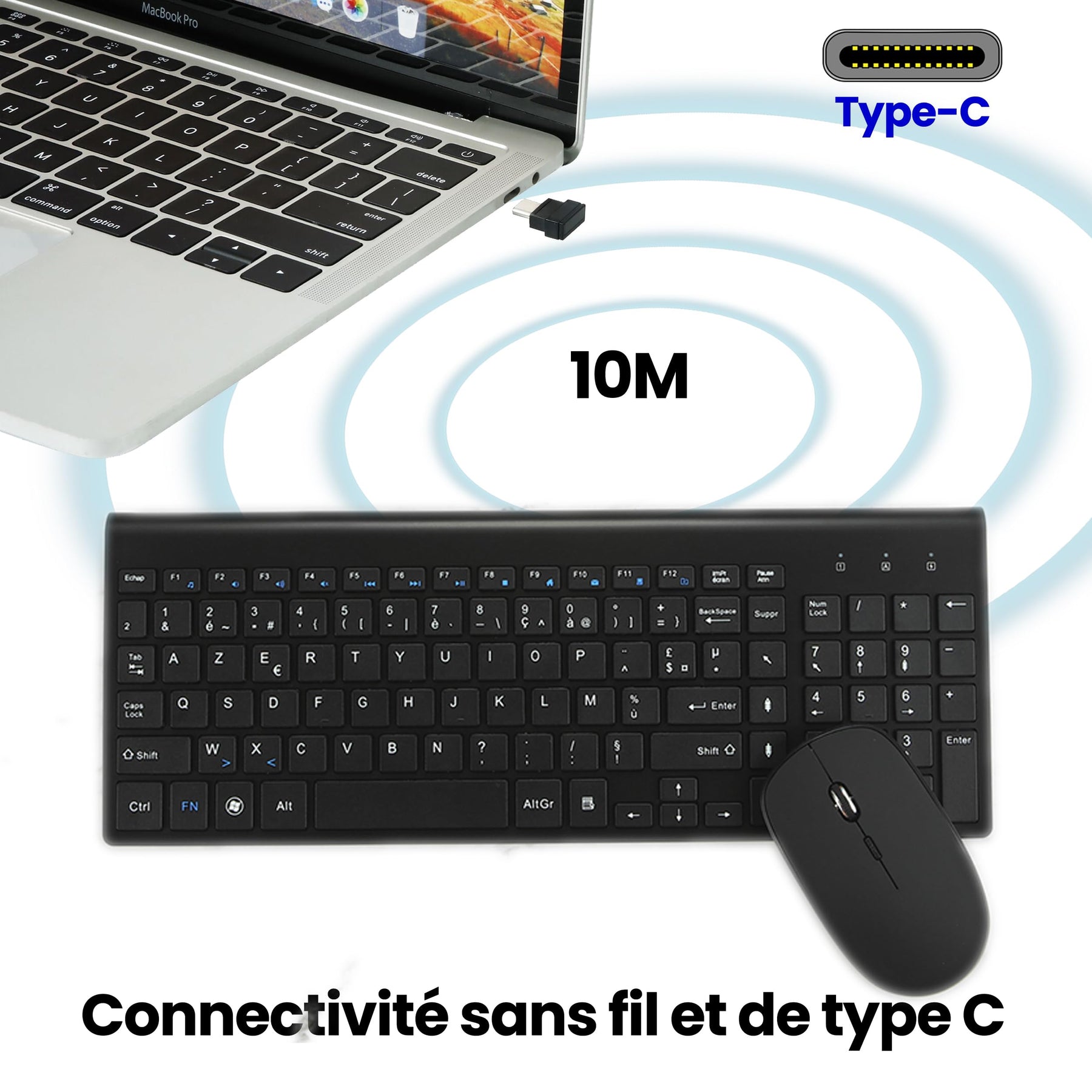 Kombination aus kabelloser Tastatur und Maus, USB C, Tastatur und Maus, volle Größe, Typ C, kompatibel mit Win 7/8/10, MacBook Pro/Air, Laptop, PC
