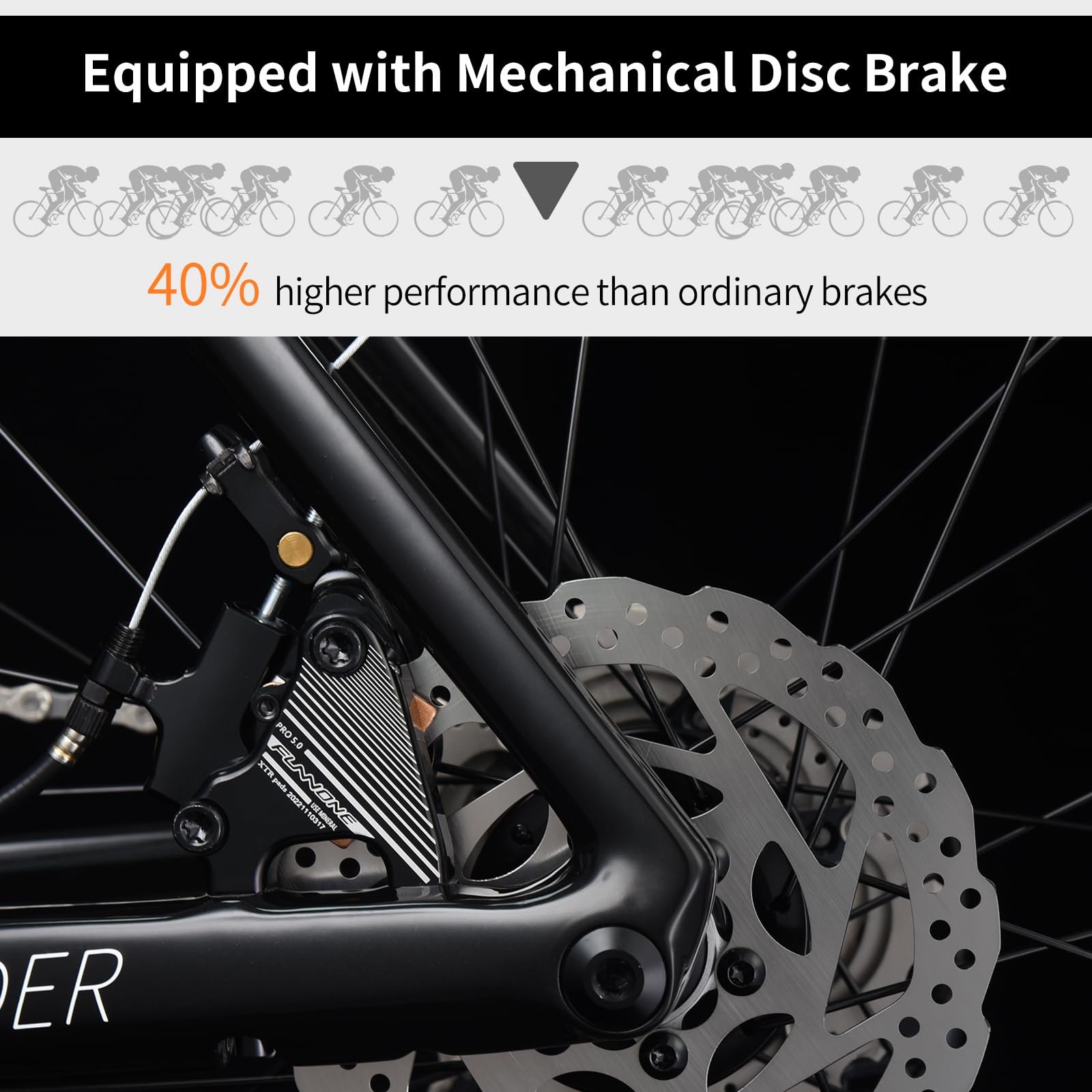 - Hydraulisches Scheibenbremssystem: Im Vergleich zu herkömmlichen V-Bremsen sind hydraulische Scheibenbremsen haltbar und langlebig, mit stabilerem Bremsweg, höherer Sicherheit und besserer Manövrierbarkeit.