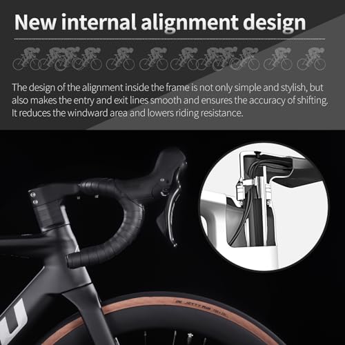• Vollständig aus Carbonfaser: Das Rennrad verfügt über einen Rahmen, eine Gabel, eine Sattelstütze, einen Lenker und einen Laufradsatz aus T800-Kohlefaser. Gewicht nur 8,8 kg (19,4 lb). Ob im täglichen Leben oder im Rennen, es kann Sie leicht zu verwalten.