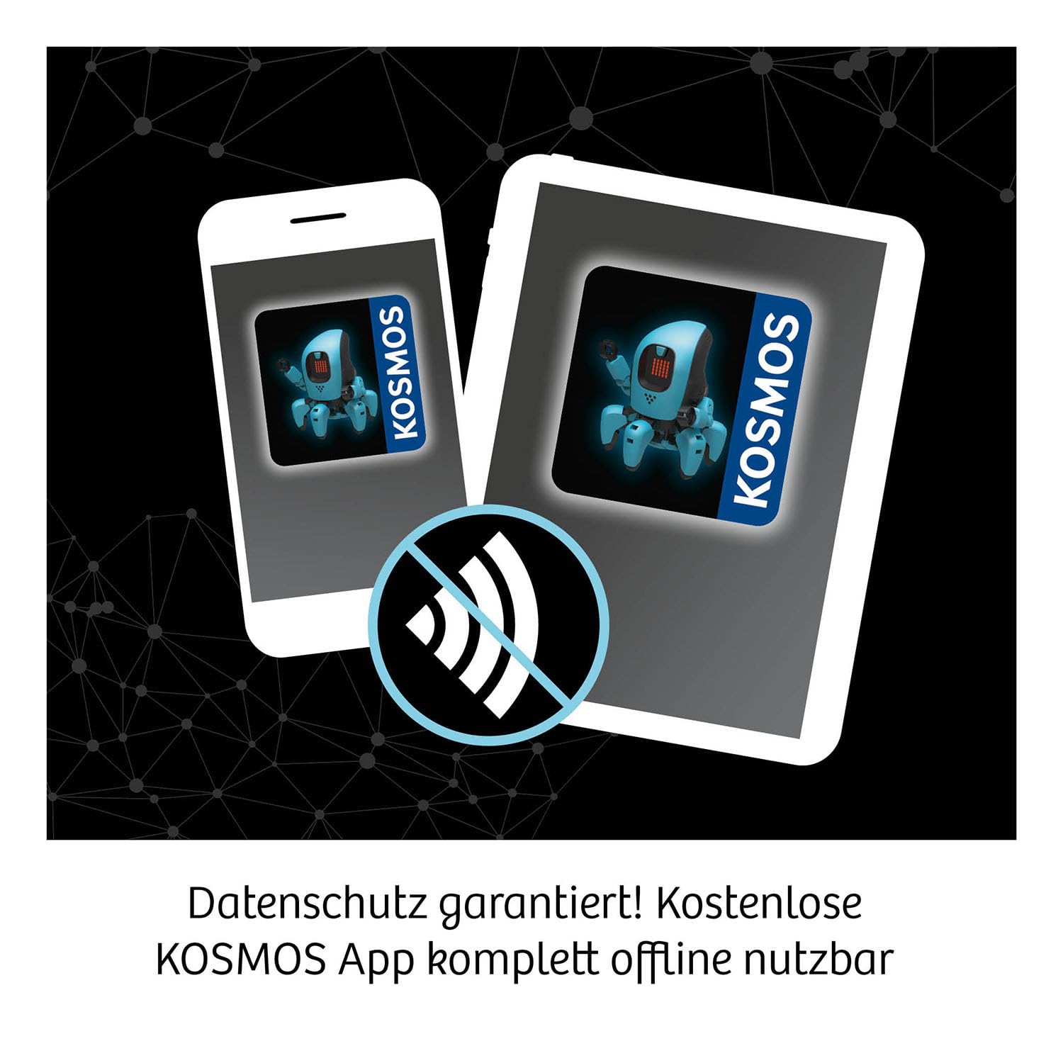 K.I. spielerisch verstehen - Miika holt die zukunftsweisende Technologie in die Gegenwart. Ob Audiobefehle oder Gesten, mit dem Smartphone kann Miika K.I. sogar beigebracht werden, auf ein Pfeifsignal hin loszulaufen oder auf ein Fingerschnippen mit einer Linksdrehung zu reagieren. Einmal aufgebaut ergeben sich mit dem Multitalent geniale Möglichkeiten - das LED-Display in Miikas Gesicht kann Mimiken oder Text darstellen, er blinkt, piept und bewegt sich in alle (möglichen) Richtungen. Das Highlight ist natürlich Miikas Steuerung über die App, die offline arbeitet - damit ist der Datenschutz garantiert.