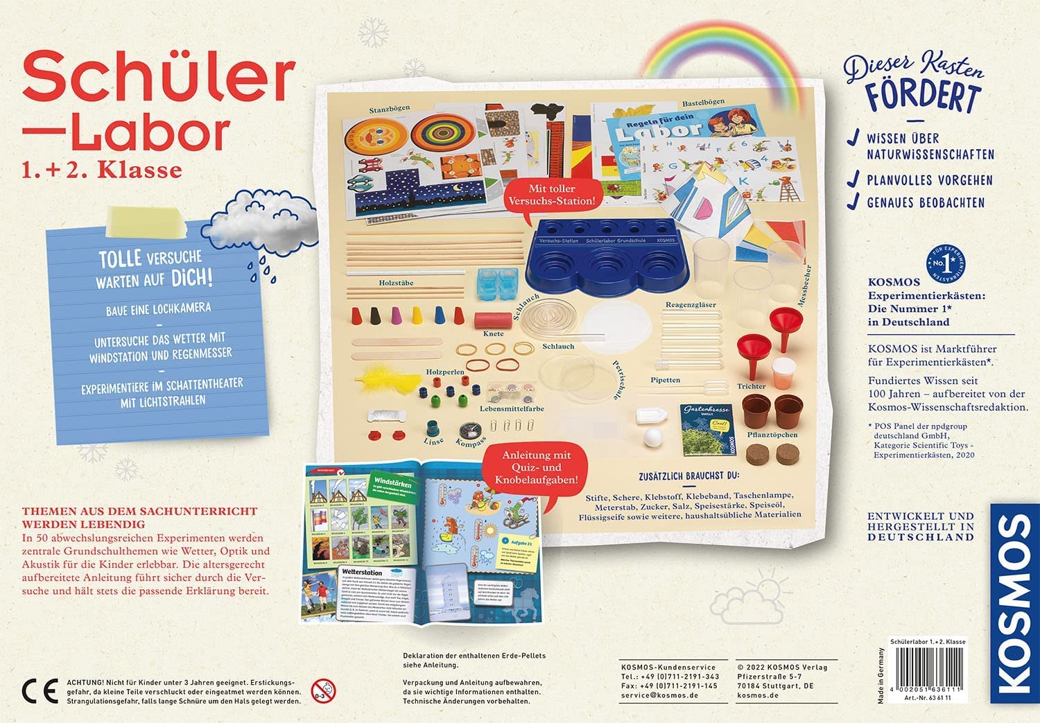 Mit Spaß und überraschenden Aha-Effekten - hier forschen und lernen Kinder über ihren Schulalltag hinaus! Dabei sind die Inhalte genau auf den Sachunterricht der 1./2. Klasse zugeschnitten und orientieren sich am Lehrplan. Einfach Pipette und Co. selbst in die Hand nehmen und durchstarten, denn so festigt sich das Wissen in den über 50 Versuchen noch viel besser! Wie kann ich Lichtstrahlen sichtbar machen? Was hat es mit der Oberflächenspannung von Wasser auf sich? Die umfassenden und vielseitigen Experimente führen von Licht und Schatten über Farben, Luft und Wasser zu Hören und Sehen. Nach jedem Abschnitt wird das Gelernte in kleinen Aufgaben zum Ausfüllen auf die Probe gestellt - mit diesem KOSMOS Experimentierkasten für Kinder zwischen 6 und 9 Jahren macht selbstständiges und nachhaltiges Lernen Spaß! Versuchsstation, Lupe, Kompass, Blumentöpfchen, Erde-Pellets, Kresse-Samen, Petrischale, Knete, Schlauch, Holzstäbe, Reagenzgläser, Messbecher, Pipetten, Styroporboot, Feder, Färbetabletten, Schnur, Holzperlen, Papierbögen, Stanzbögen, Eiswürfelform und vieles mehr, farbig illustrierte Anleitung Inhalt: