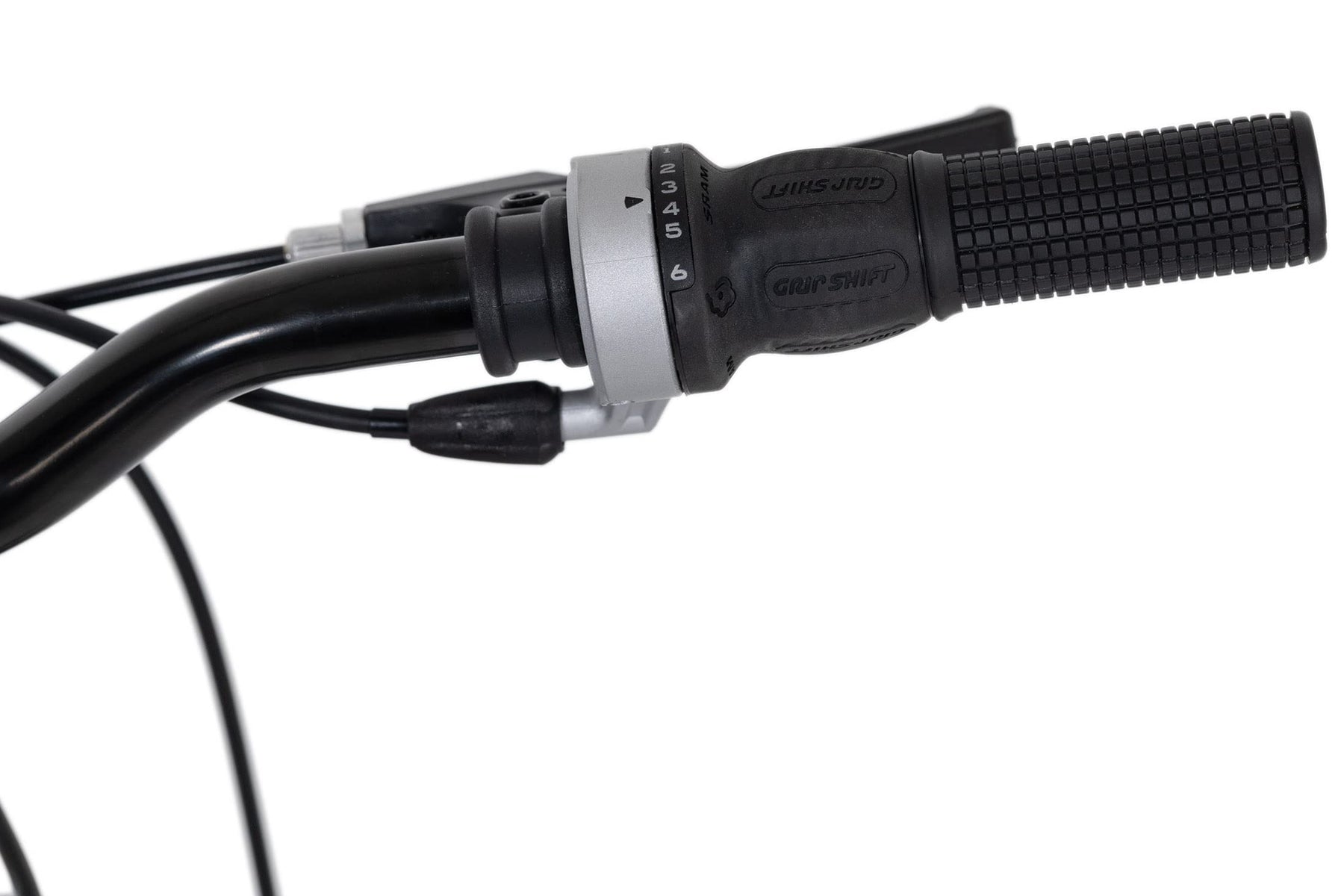 - Für Sicherheit sorgen dabei V-Brakes vorne und hinten. Das Bike ist außerdem mit einer 18-Gang-Kettenschaltung von SHIMANO ausgestattet.