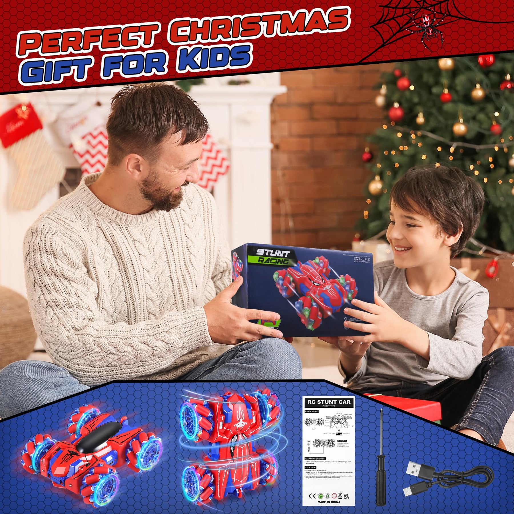 - 【Ideales Spinnenspielzeug für Kinder】 Dies ferngesteuertes auto ab 3 jahre kann die Grenzen der Fantasie von Kindern erkunden und die Kommunikation zwischen Kindern fördern. Ein perfektes Geschenk für Geburtstage, Partygeschenke zum Thema Spider-M, Kindertag, Weihnachten. Es ist das beliebteste Spinnenspielzeug für Jungen im Alter von 4–6, 5–7 und 8–13 Jahren *Fernbedienung verwendet 2 x 1,5 V AA-Batterien (nicht im Lieferumfang enthalten)