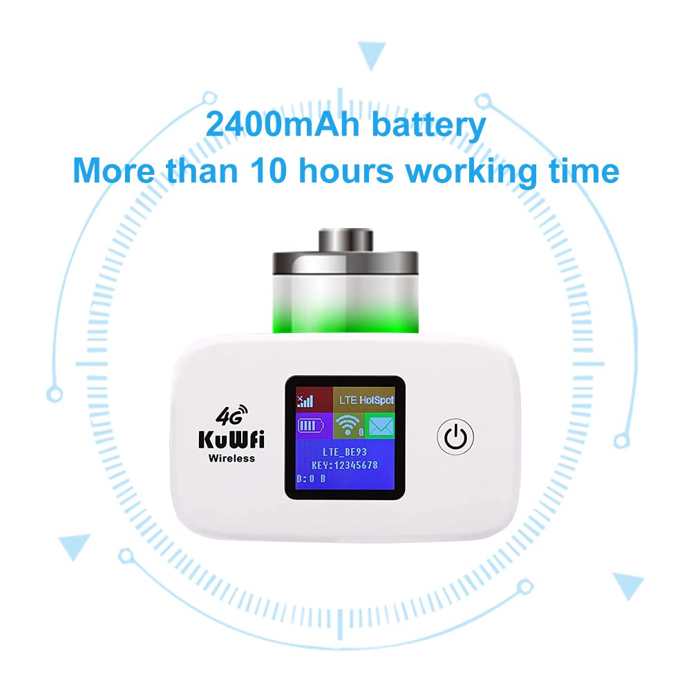 KuWFi mobiler WLAN Router, 4G LTE Router für SIM-Karten (4G/LTE bis zu 150Mbit/s Download/ 50Mbit/s Upload, Hotspot, 2400mAh Akku, kompatibel mit Allen europäischen SIM Karten) Plug&Play