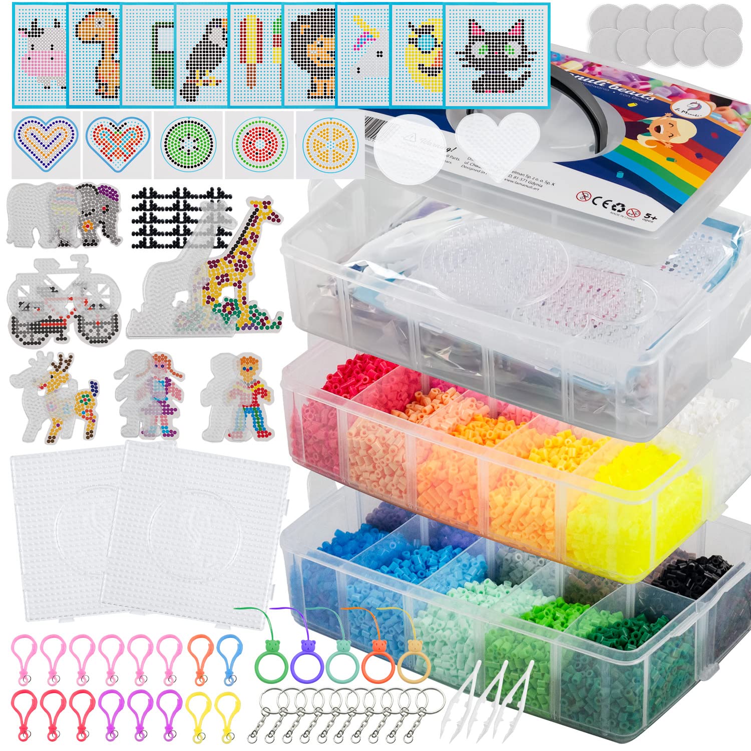 - 💥 Satz mit 24000 Bügelperlen: Das Set enthält 24.000 Bügelperlen in einer Vielzahl von Farben, mit denen Sie viele verschiedene Projekte realisieren können. Die Menge der Perlen reicht aus, um viele interessante Kreationen zu schaffen und ermöglicht es dem Kind, seine Fantasie und seine handwerklichen Fähigkeiten zu entwickeln.