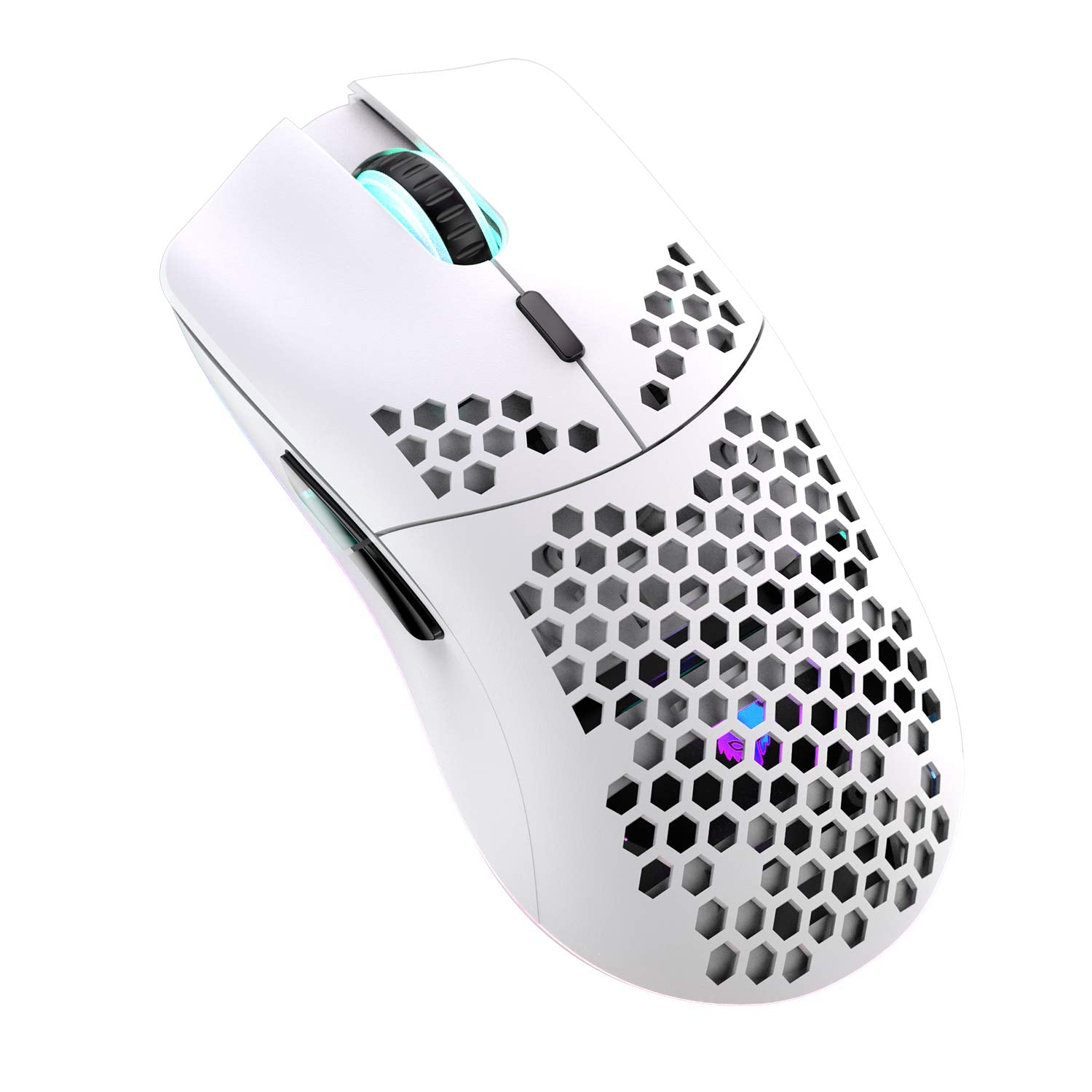 Lancoon Kabellose Gaming Maus, Hohl Geschnitztes Design, Bunt, Wiederaufladbar, Langlebig, 2.4 G 4 Einstellbare 3200-DPI-Stufen, 7 Tasten, Optischer Sensor Für E-Sportb Arbeit(Weiß)