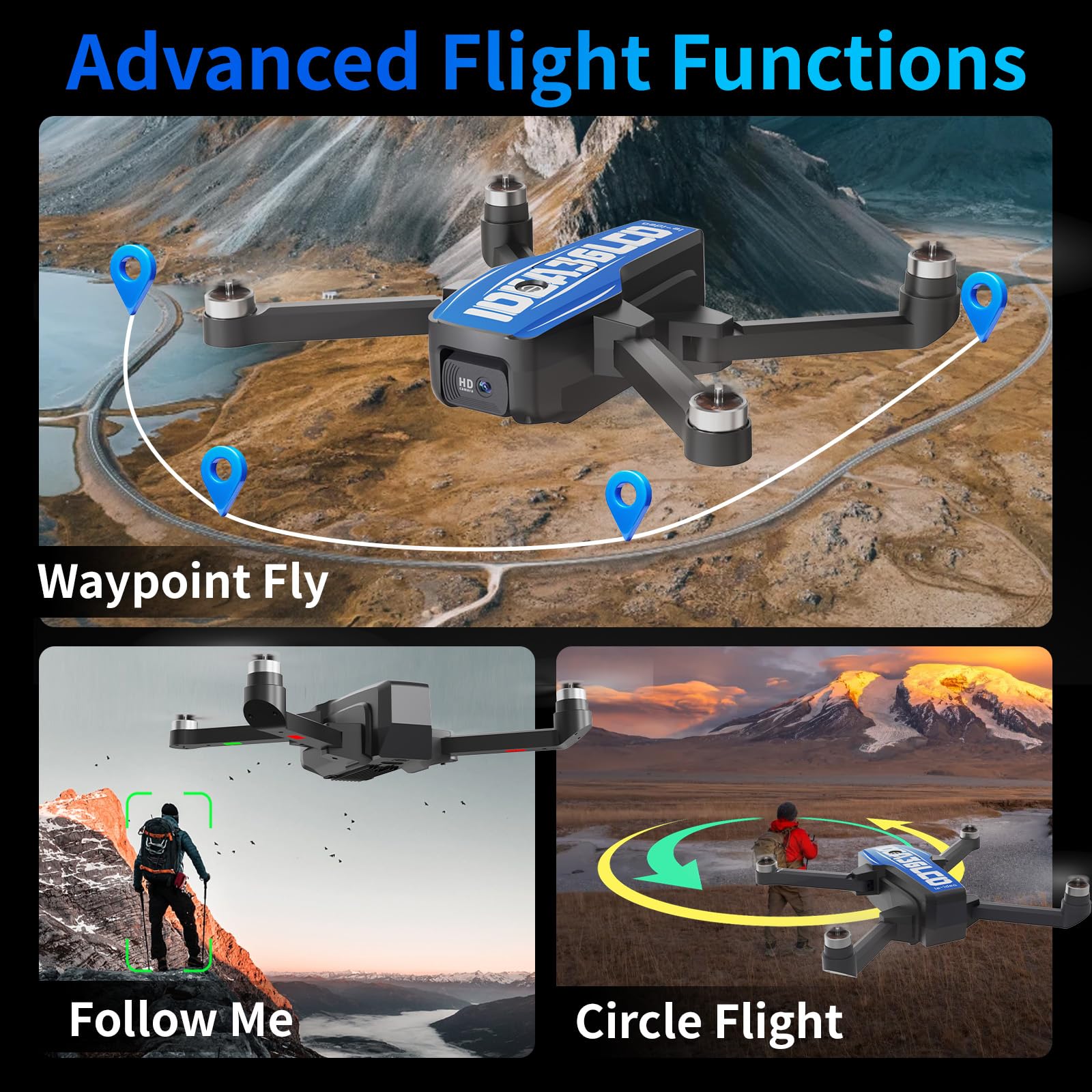 • 【GPS + Multifunktion】RC DrohneMit dem GPS-System können Sie einfach folgen sie mir, waypoint fliegen und circle flug.Die Integration von Start/Landung mit einem Klick, dem Kopflosen-Modus und der höhenhalt macht es für Neulinge einfach, sich von Richtungsstörungen zu verabschieden. Der "Follow Me"-Modus eignet sich für Sportszenen und vereinbart professionelle Leistung mit einfacher Bedienung.