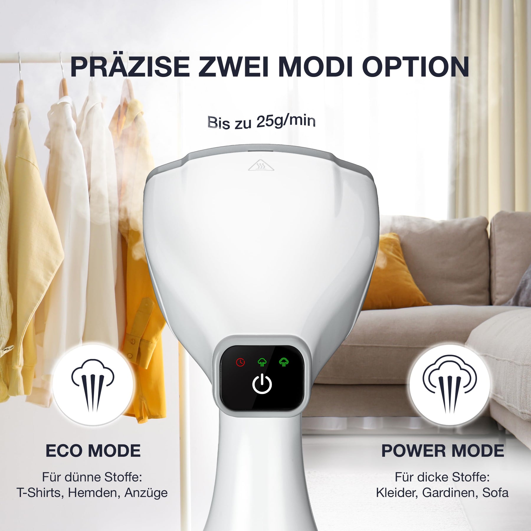 - 👔 HANDBÜGELEISEN MIT LCD DISPLAY : Komfortabler Auswahl von ECO & POWER Mode des Streamer möglich & dank extra langem 2,5m Stromkabel deutlich flexibler nutzbar als vergleichbare Handbügeleisen I Hochwertige Kunststoffdichtungen verhindern zudem ein Auslaufen des Clothes Steamer