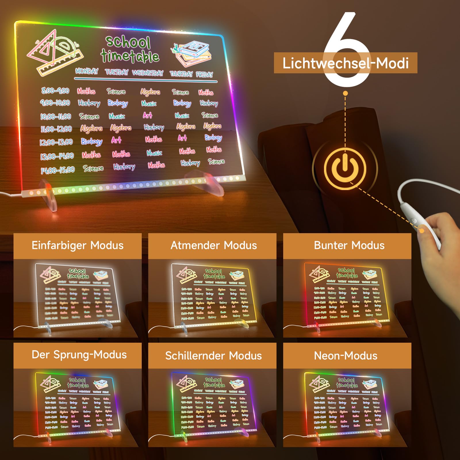 - Multifunktionaler Einsatz:Glow magic board eignet sich perfekt für Kinder Notizen, To-Do-Listen, Kritzeleien der Kinder, Speisekarten, Zeitpläne oder als dekoratives Nachtlicht. Inklusive 2 unsichtbaren Ständern + Aufhängeset für die Tisch- oder Wandpräsentation in Wohnungen, Büros oder Cafés.