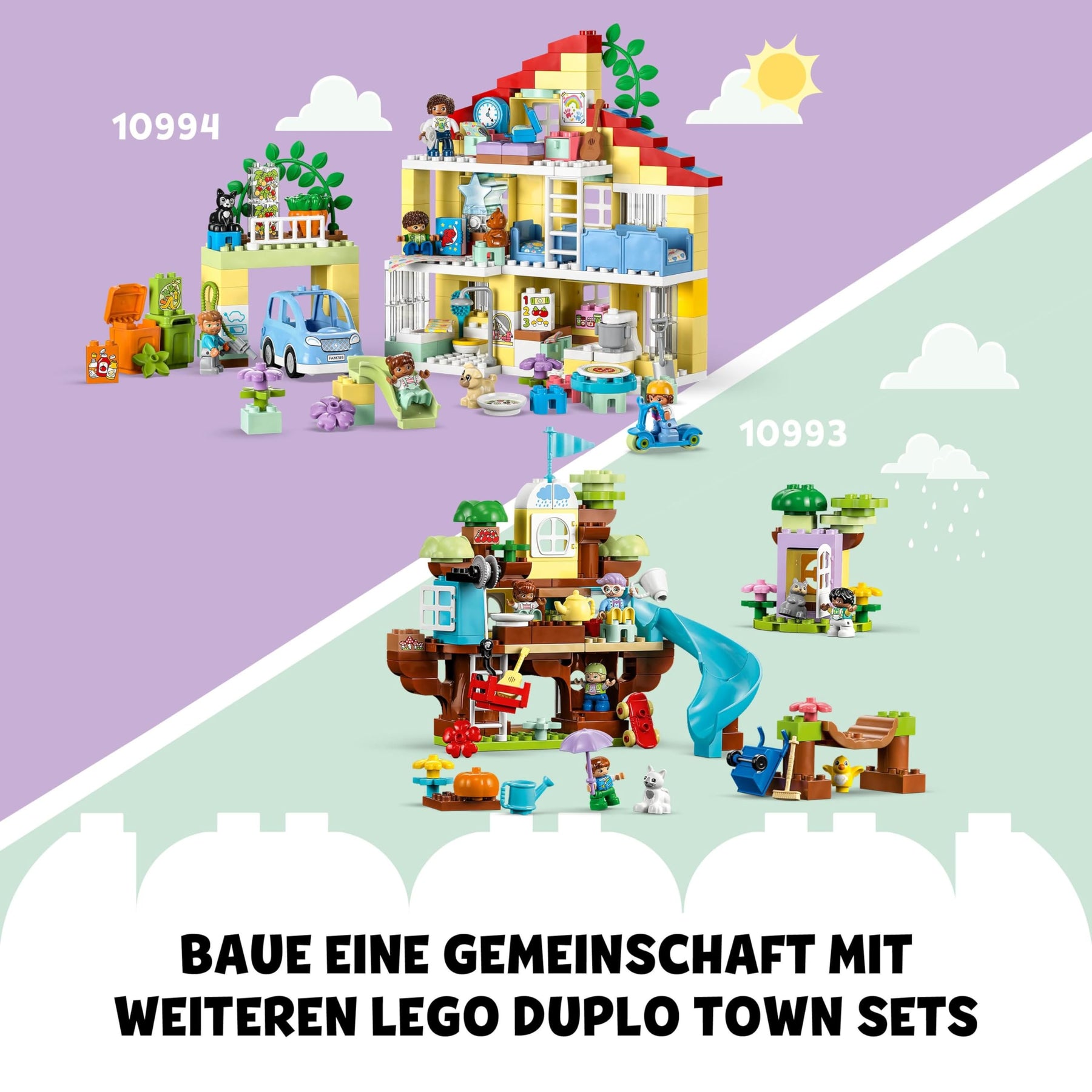 LEGO 10994 DUPLO 3-in-1-Familienhaus, Puppenhaus aus Bausteinen mit Push&Go Auto, 5 Figuren, 2 Tieren und Spielzeug-Lampe, Spielhaus Geschenk für Kleinkinder, Mädchen und Jungen ab 3 Jahren