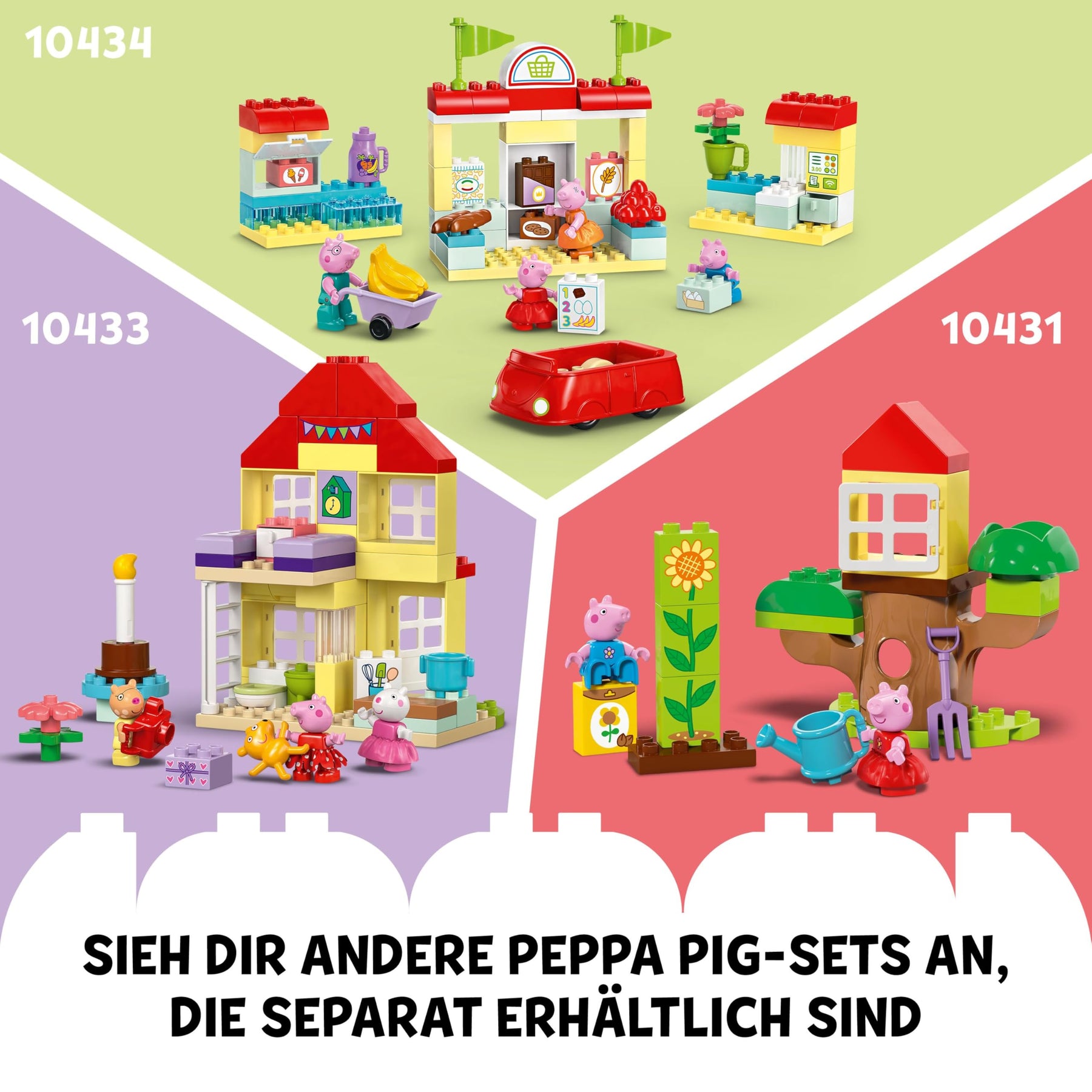 LEGO DUPLO 10432 Peppas Bootausflug ist ein kreatives Spielzeug, das Vorschulkindern viele Stunden Lern- und Spielspaß bietet. Kinder ab 2 Jahren können die Figuren Opa und Peppa mit Opas Boot an den Strand begleiten. Das Spielzeugboot kommt mit jeder Menge kreativem Zubehör zum Bauen und Umbauen. So werden Kleinkinder zu vielen Geschichten inspiriert. Sie können Peppa Pig helfen, Sonnencreme aufzutragen, bevor sie nach Muscheln suchen, und das Stapeln üben, indem sie eine Sandburg bauen. Wenn es Peppa zu heiß in der Sonne wird, kann sie sich unter den Sonnenschirm setzen oder schwimmen gehen. Wenn Kleinkinder Peppa die Schwimmflossen überstreifen, üben sie ihre Hand-Augen-Koordination und ihre Fingerfertigkeit. Und wird den Kindern beim Spielen auch zu heiß, können sie dieses LEGO Boot einfach zum Planschen mitnehmen. LEGO DUPLO Peppa Pig Spielzeuge helfen Vorschulkindern beim Lernen und bringen ihnen bei, logisch und kreativ zu denken, indem sie einen Handlungsstrang bauen und Szenen aus der beliebten TV-Serie nachstellen. Das Spielzeugboot ist 11 cm groß, 12 cm lang und 18 cm breit. Enthält 23 Teile.