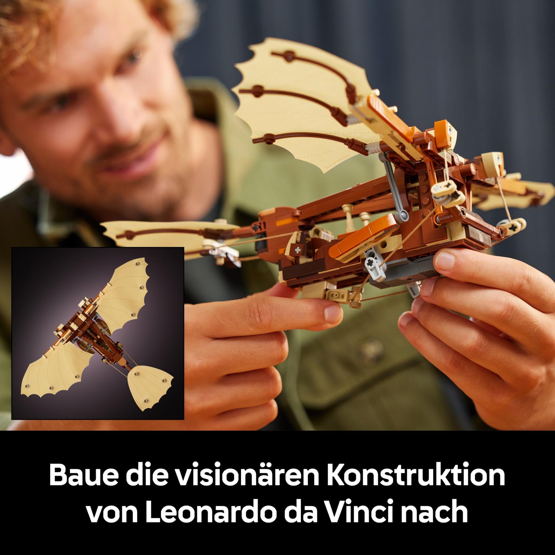 - Da Vincis Schwingenflügler– ein Bauset für Erwachsene: LEGO Icons Leonardo da Vincis Fluggerät ist ein Bauprojekt für Erwachsene und lässt dich die innovativen Konzepte aus den frühesten Anfängen der Luftfahrt entdecken