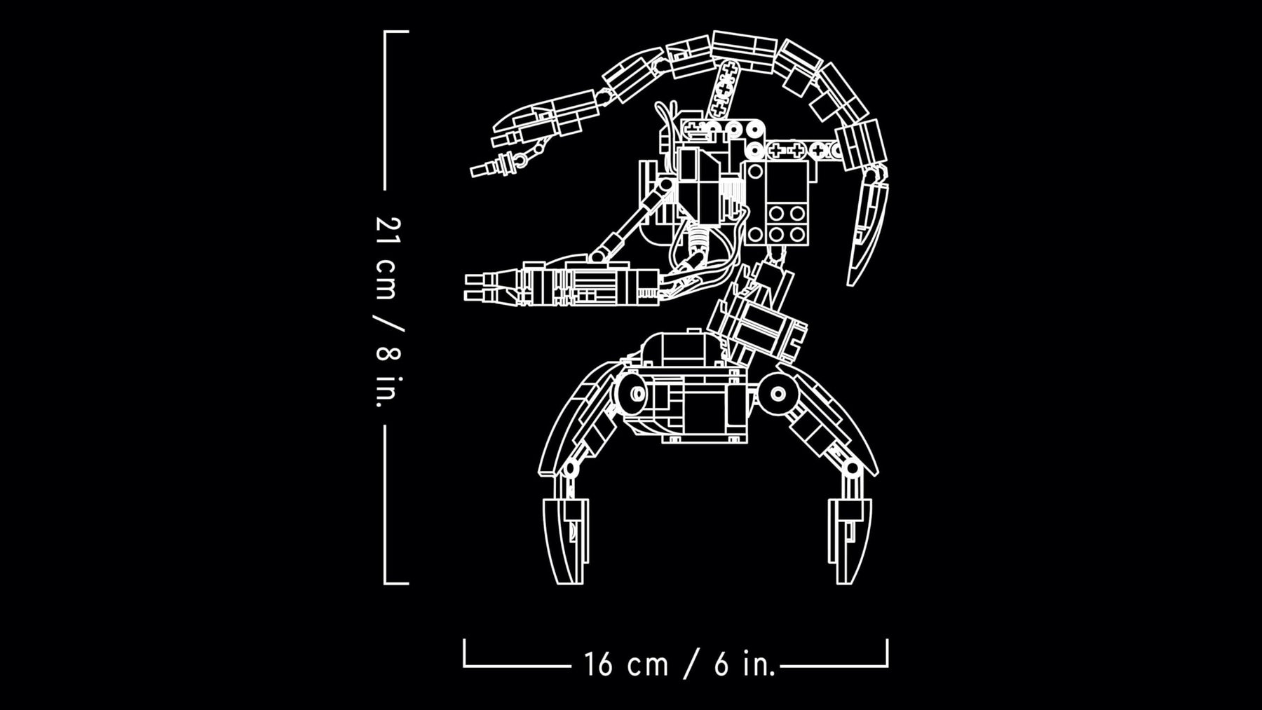 • LEGO Star Wars Sammlerstück zum Ausstellen mit verspielten Details: Bewege die Arme des Droidekas vor und zurück, um seine Schießbewegung nachzuahmen, und leg seine Beine an, um ihm seine Kugelform zu verleihen
