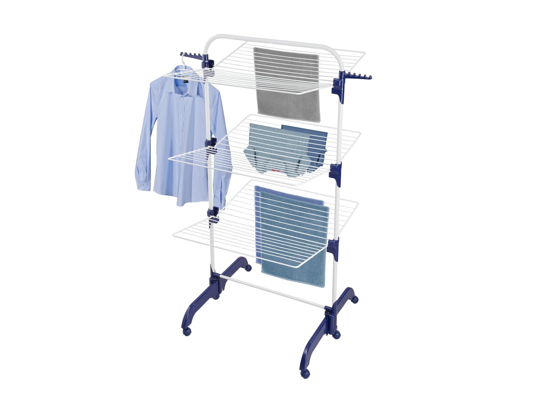 - Viel Hängefläche - die drei Ebenen des Turmständers bieten Platz für bis zu 4 Wäscheladungen, ideal für Großfamilien. Zwei seitliche Kleiderhaken bieten zusätzliche Trockenfläche für 10 Kleiderbügel