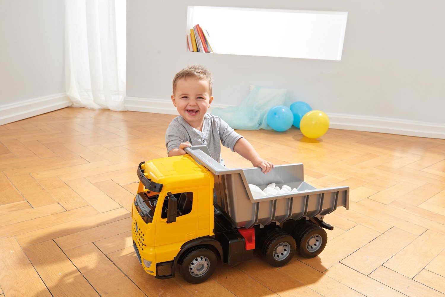 - Solide Stabilität. Kinder können ihn ordentlich beladen. Kippmulde verriegelbar