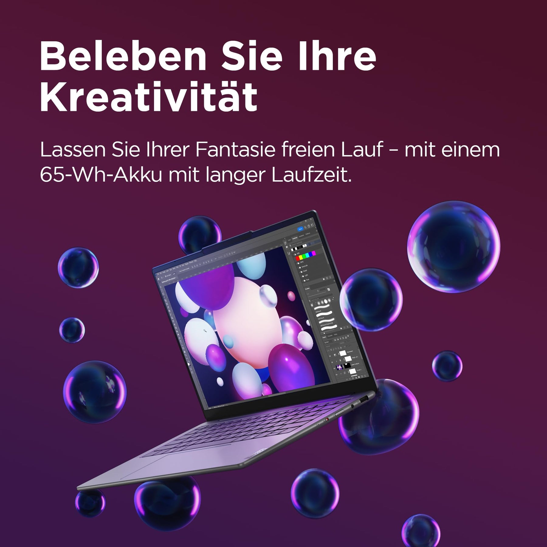 - Dieses 14" schlanke und leichte OLED-Notebook mit 100 % P3 Farbraumabdeckung bietet exklusive Smart Experiences von Lenovo – darunter Smart Modes zur Leistungsoptimierung und Smart Share für nahtlose Verbindungen.