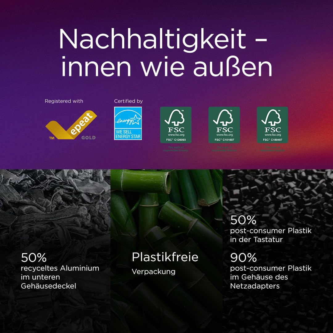 - Dank seines leichten Designs, das nur 1.23 kg wiegt, WiFi 7 und der Copilot+ AI PC-Zertifizierung ist es bereit für die Zukunft.
