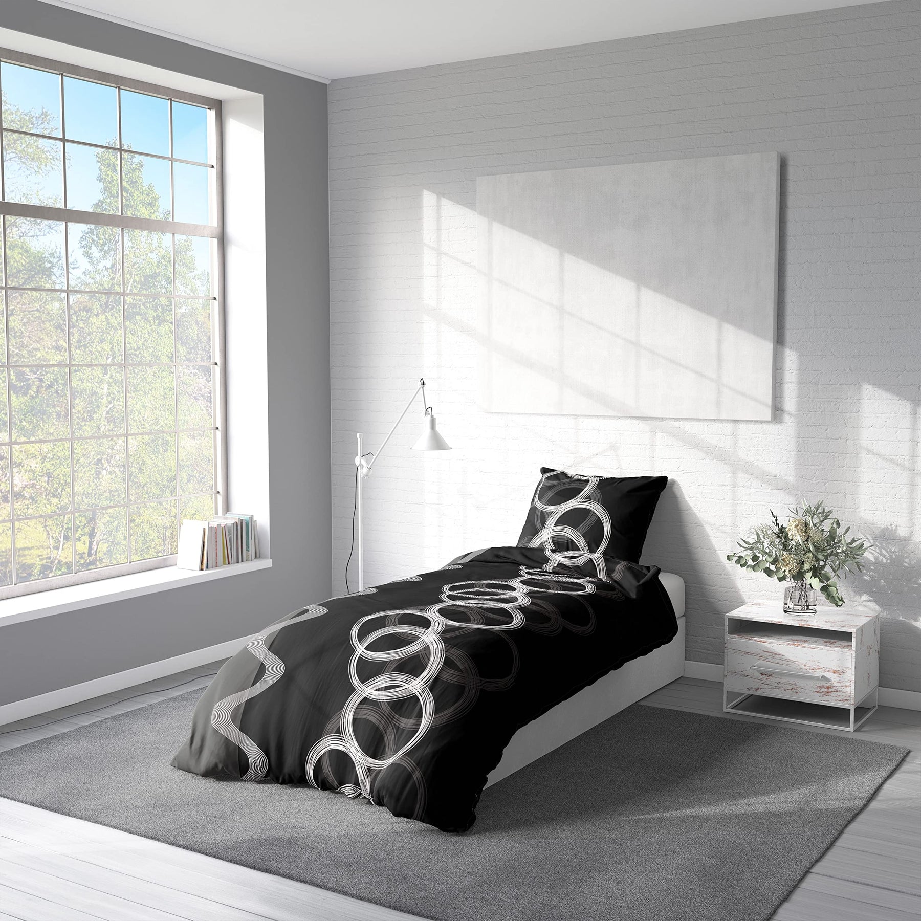 Einzelheiten: Produkteigenschaften: Diese Mikrofaser Bettwäsche aus 100 % Polyester besitzt eine weiche Oberfläche. Zudem ist sie atmungsaktiv und feuchtigkeitsregulierend. Diese Eigenschaften der Bettwäsche sorgen ganzjährig für einen optimalen Schlaf. Hohe Haltbarkeit, Strapazierfähigkeit und Formbeständigkeit zeichnen diese Bettwäsche aus. Sie ist pflegeleicht, bügelleicht und antistatisch. 100 % Mikrofaser ist für Hausstaubmilben undurchlässig und wird auch von anderen Textilschädlingen gemieden, dadurch ist diese Bettwäsche ideal für Allergiker geeignet! Die Bettwäsche ist mit einem praktischen Reißverschluss ausgestattet. Pflegehinweise: Sie können die Bettwäsche bis 60 Grad waschen. Keine Chlorbleiche möglich. Trocknen und bügeln (Bügeleisen Stufe 1) mit geringer Temperatur. Keine chemische Reinigung.