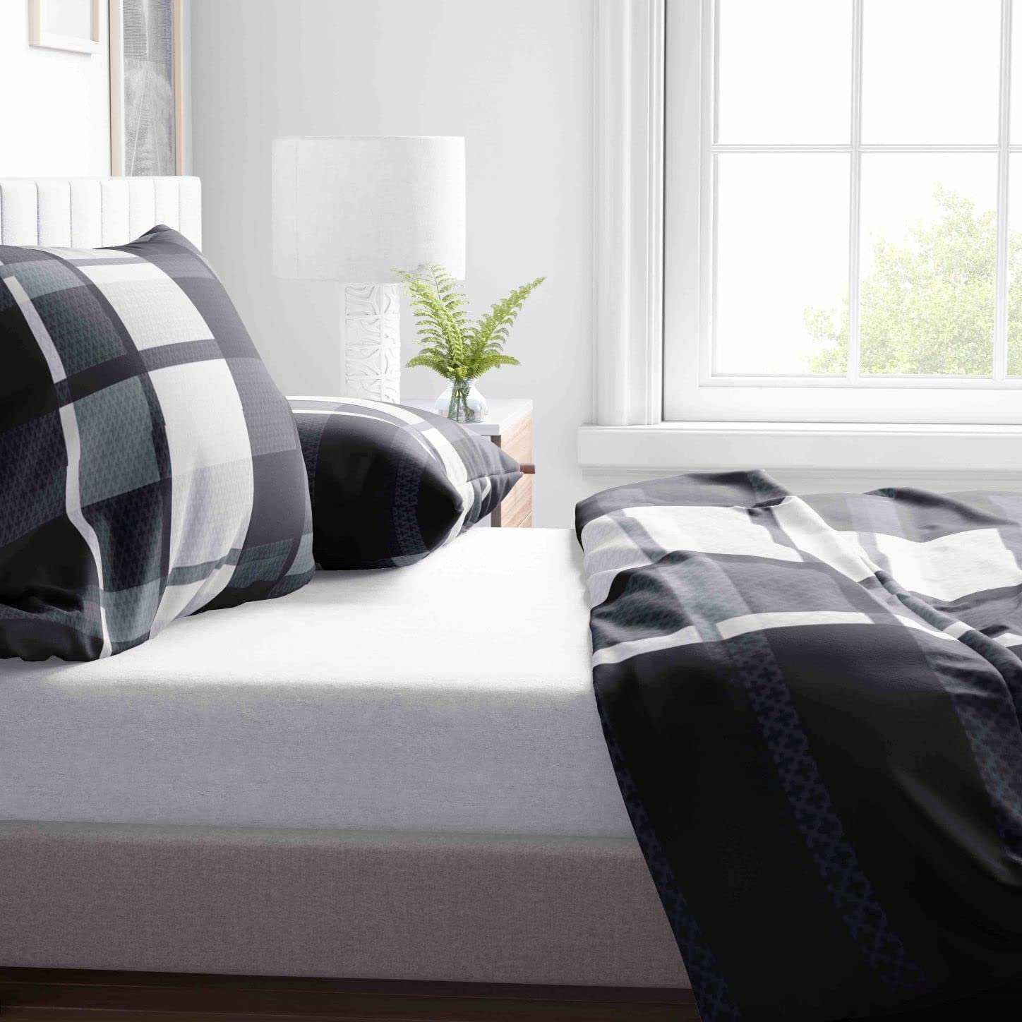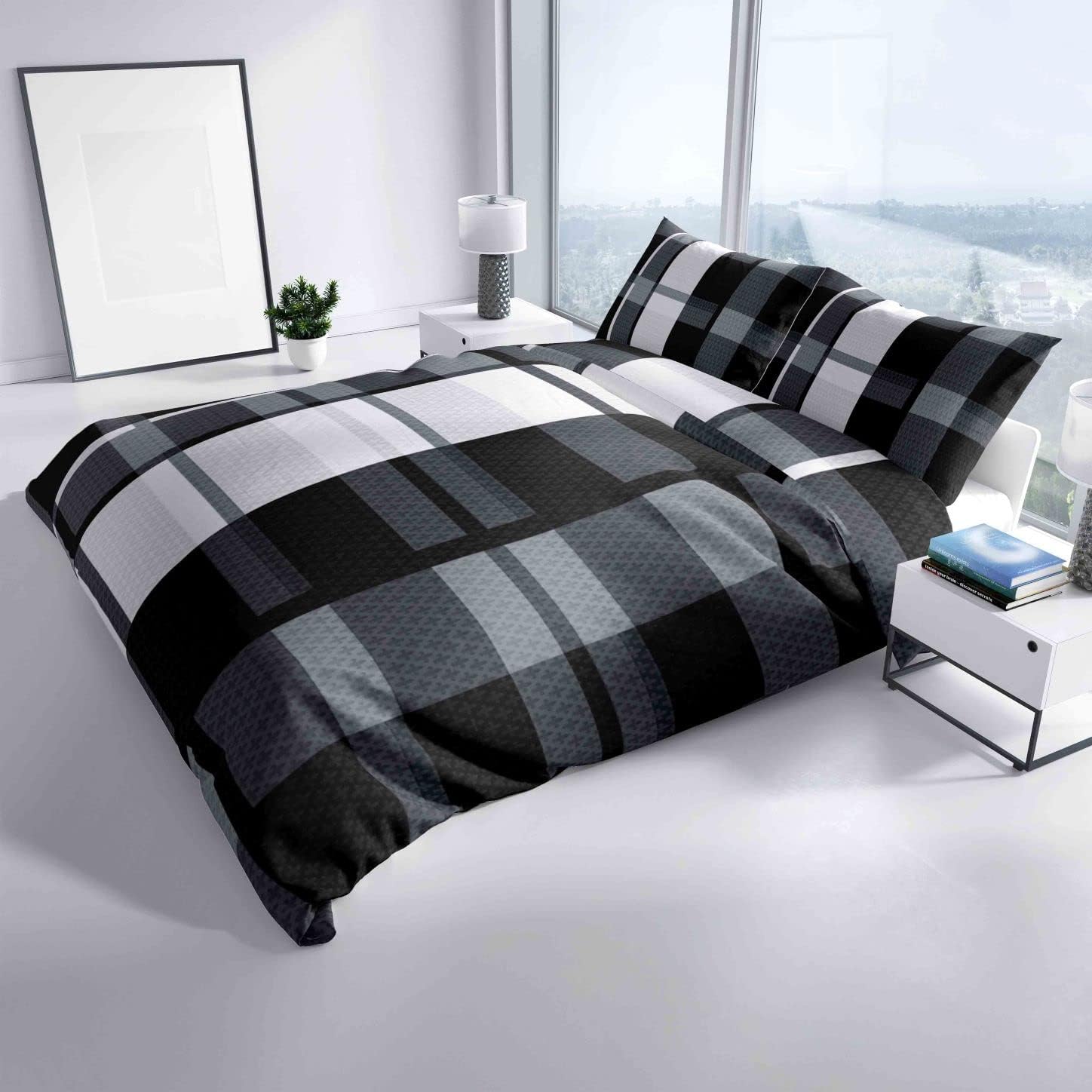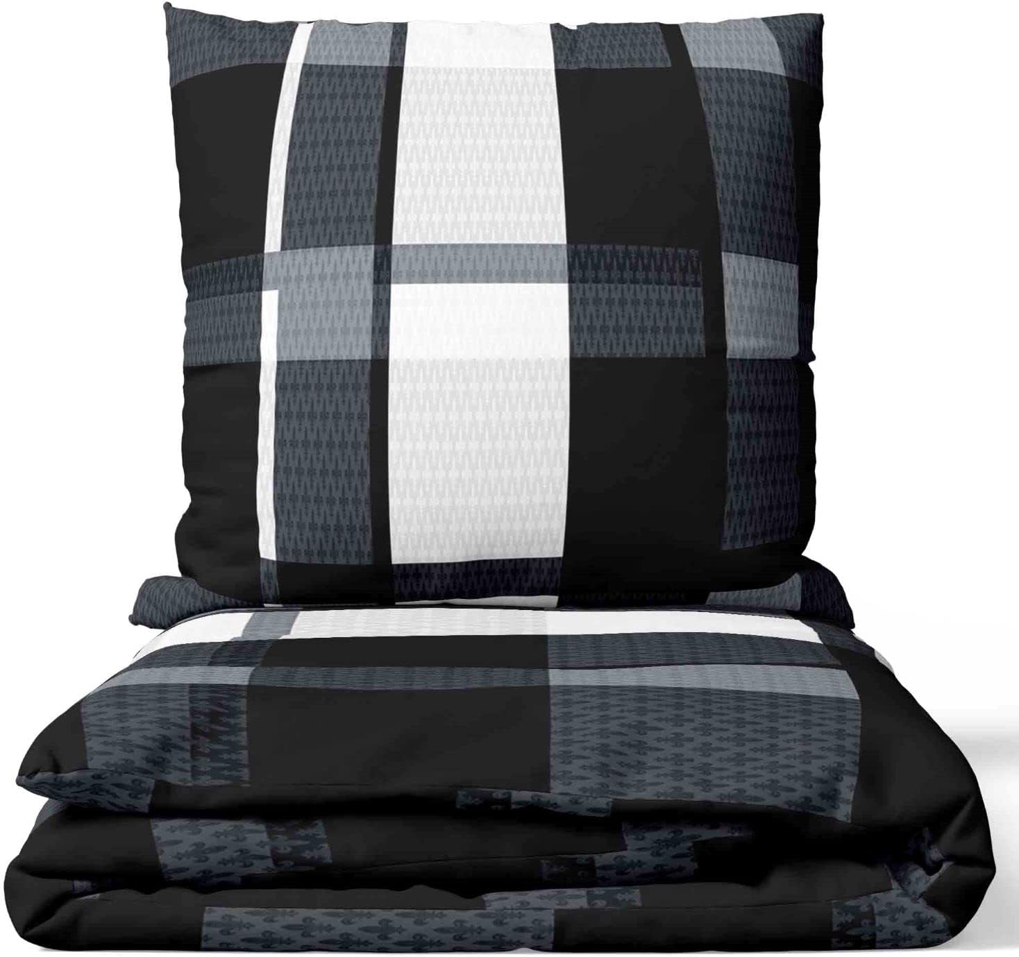 - 4teilig Bettwäsche - Set Gestreift Grau Schwarz Weiss