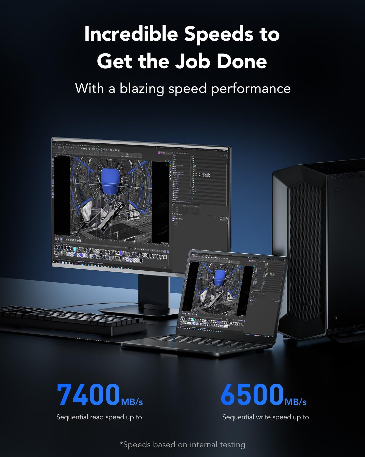 - Außergewöhnliche Leistung: Außergewöhnliche Leistung bis zu 7400 MB/s beim Lesen und 6500 MB/s beim Schreiben
