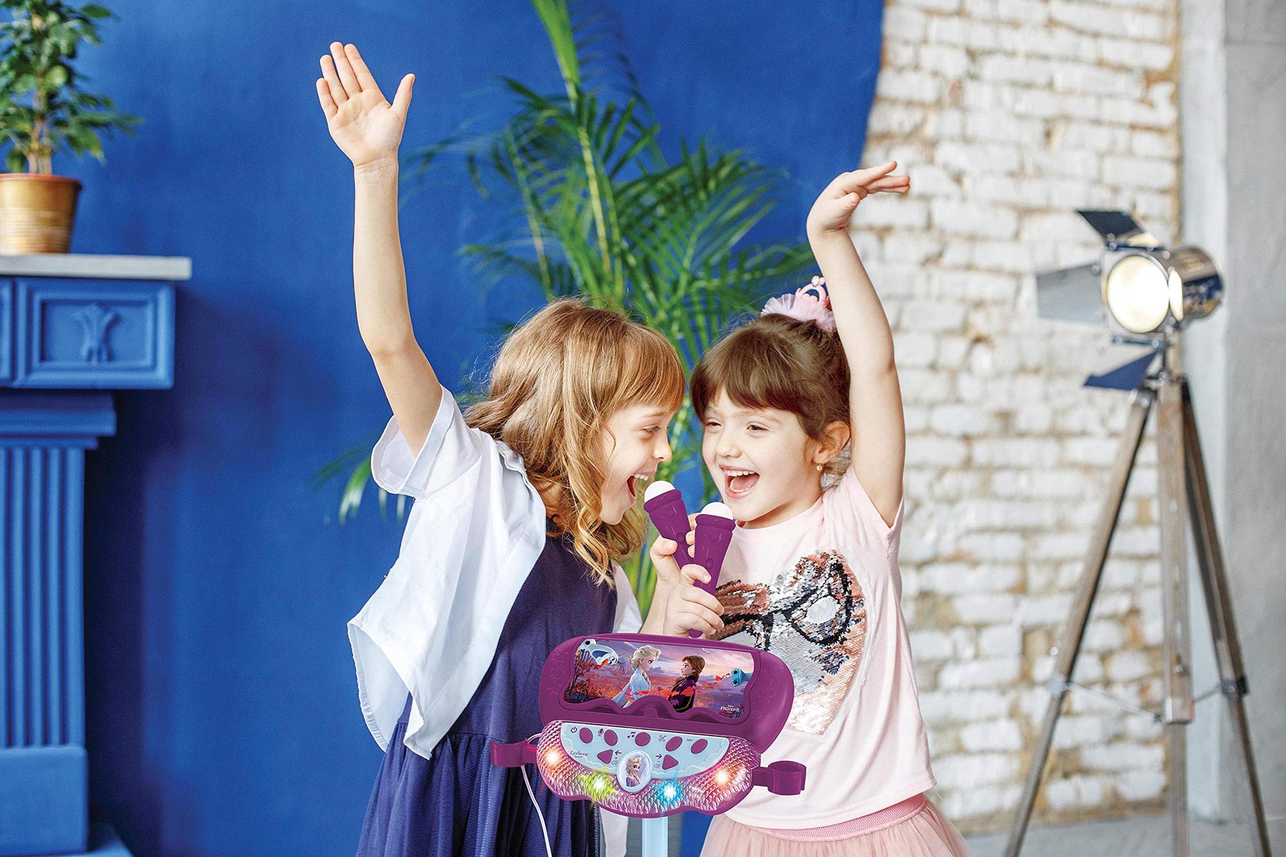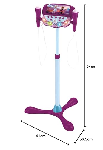 Mach dich bereit für die Bühne mit diesem wundervollen Die Eiskönigin 2-Mikrofon! Schließen Sie dank des Audiokabel einen beliebigen Audiogerät (Smartphone nicht inbegrifefn) an den Lautsprecher an und singen Sie Ihre Lieblingslieder mit! Lichteffekte auf dem Lautsprecher beim Singen! Höhenverstellbar (60 bis 95 cm) und damit passend für alle jungen Musiker. Nehmen Sie Ihr Spiel direkt am Mikrofon auf. Im Lieferumfang sind 2 Mikrofone zum Singen im Duett enthalten. Einschließlich Handyhalterung zum Aufnehmen von Fotos oder Videos während der Show oder zum Ablesen des Textes deiner Lieblingssongs. Stromversorgung: 3 x 1,5V-Batterien vom Typ AA/LR6 (nicht inbegriffen). 2 Jahre Garantie.