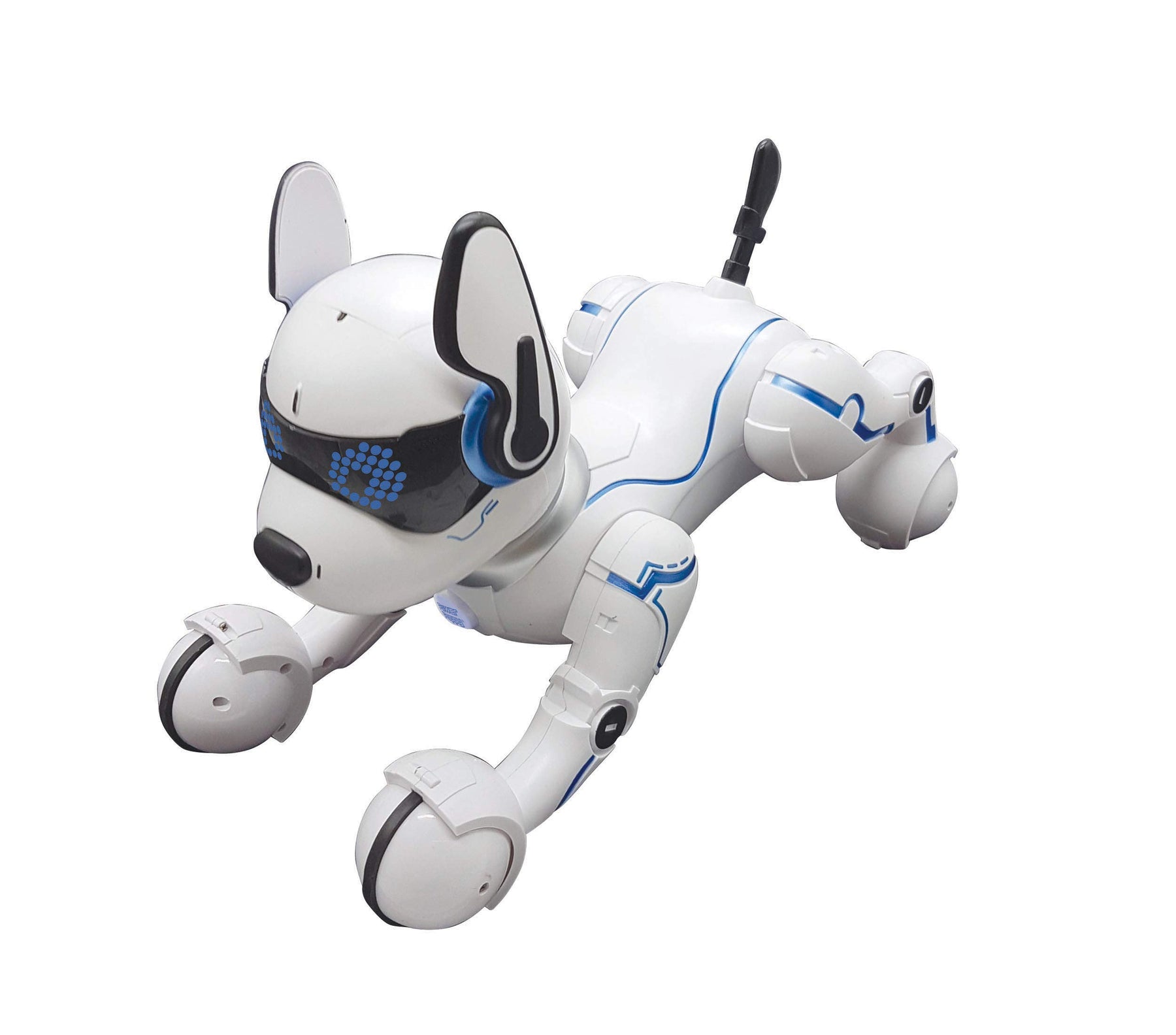 Ein sehr süßer und sehr intelligenter Hund! Ein neuer Begleiter für stundenlanges Spielen! Ein Spielzeug, das dank seiner Fernbedienung und seinen Sensoren in alle Richtungen gesteuert werden kann! Taktil, es reagiert auf die Liebkosungen auf seinem Kopf und beginnt zu tanzen! CABRIOLS UND PIROUETTES! Es kann sitzen, sich hinlegen, sich aufsetzen und betteln, Hallo sagen, schlecht spielen, Liegestütze machen und viele weitere Tricks! Jede Menge Geräusch- und Lichteffekte: Mit seinen leuchtenden LED-Augen sieht er einfach liebenswert aus! Leuchteffekte an ihrem Halsband! Zahlen durch Bellen lernen. Trainingsfunktion! Programmiere neue Tänze und Bewegungen und Power Puppy wird gehorchen! Gestensteuerung: Er gehorcht allen deinen Bewegungen! Folge mir-Funktion: Er folgt dir überallhin! Maße: 25.7 x 16 x 28 cm. Stromversorgung: 1 wiederaufladbare Batterie + 2 Batterien für die Fernsteuerung (nicht inbegriffen). Garantie: 2 Jahre - Entworfen und entwickelt in Europa - Hergestellt in China.