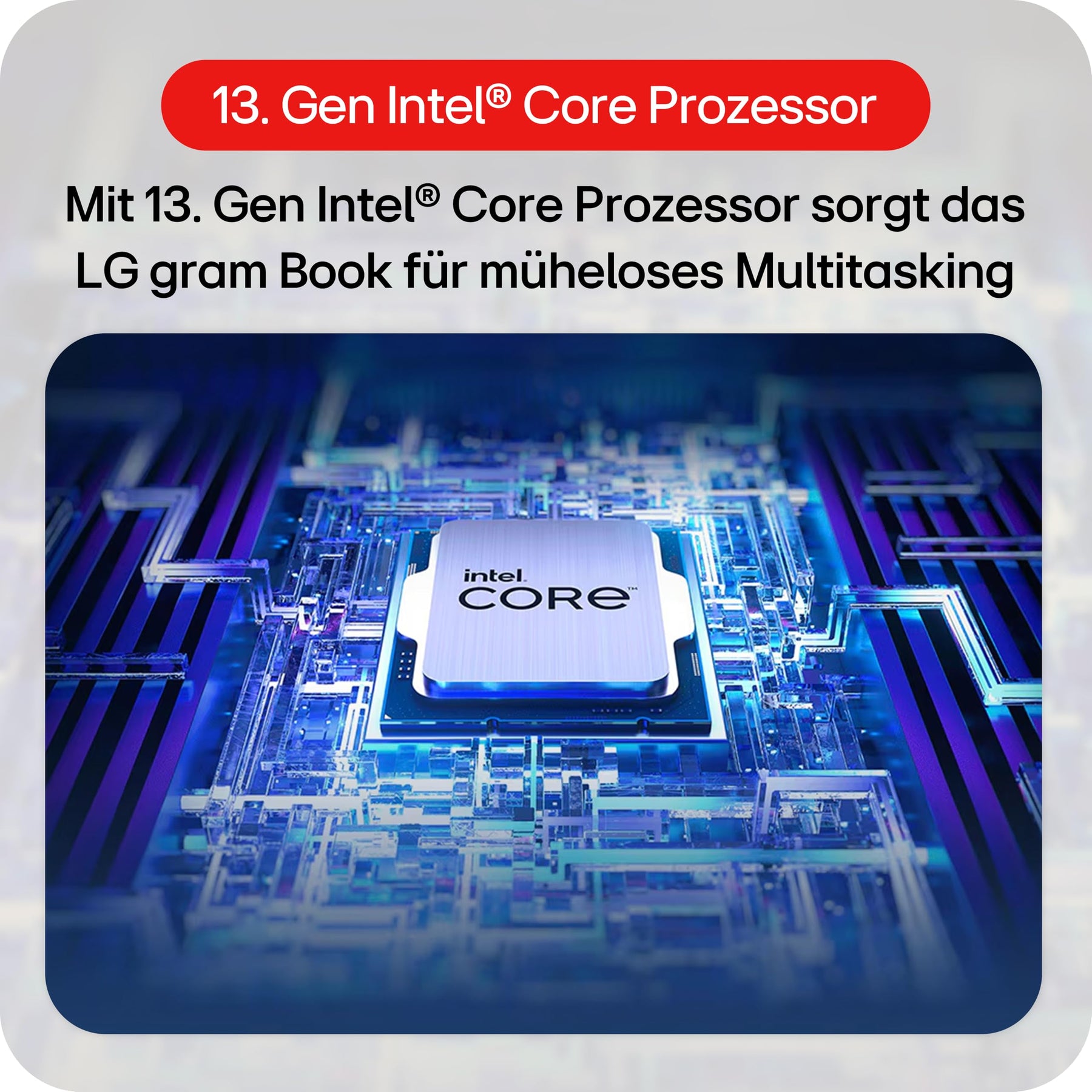 Einzelheiten: Als Neuzugang in der gram-Familie bietet das LG gram Book starke Leistung und viel Flexibilität. Im robusten Gehäuse liefert ein Intel® Core™️ i5 Prozessor der 13. Generation mit integrierter Intel® Iris® Xe Grafik starke Performance für Produktivität und Unterhaltung. Mit seinem geringen Gewicht von 1.690 Gramm ist das LG gram Book zudem leicht mitzunehmen und ermöglicht durch seinen Akku auch ohne Netzanschluss bis zu 10 Stunden Videowiedergabe. Ebenfalls immer mit dabei ist der integrierte KI-Assistent von Windows Copilot, der durch eine dedizierte Taste auf der vollwertigen Tastatur mit Ziffernblock sofort ein satzbereit ist. Die große Anschlussvielfalt inklusive USB-C sowie die Möglichkeit, den Arbeits- und Datenspeicher zu erweitern, runden das Gesamtpaket des LG gram Book ab und machen es zu einem zukunftssicheren Begleiter.
