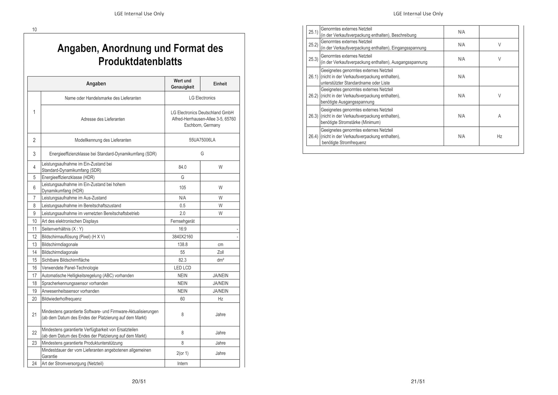Modellnummer: 55UA75006LA
