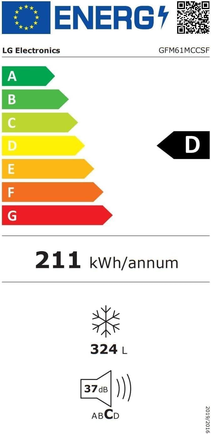 Einzelheiten: LG GFM61MCCSF, Klasse C, 324 L, Gefriergerät mit Touchdisplay, XXL-Stauraum, DoorCooling+, LINEARCooling, Wi-Fi ꟷ Matte Black