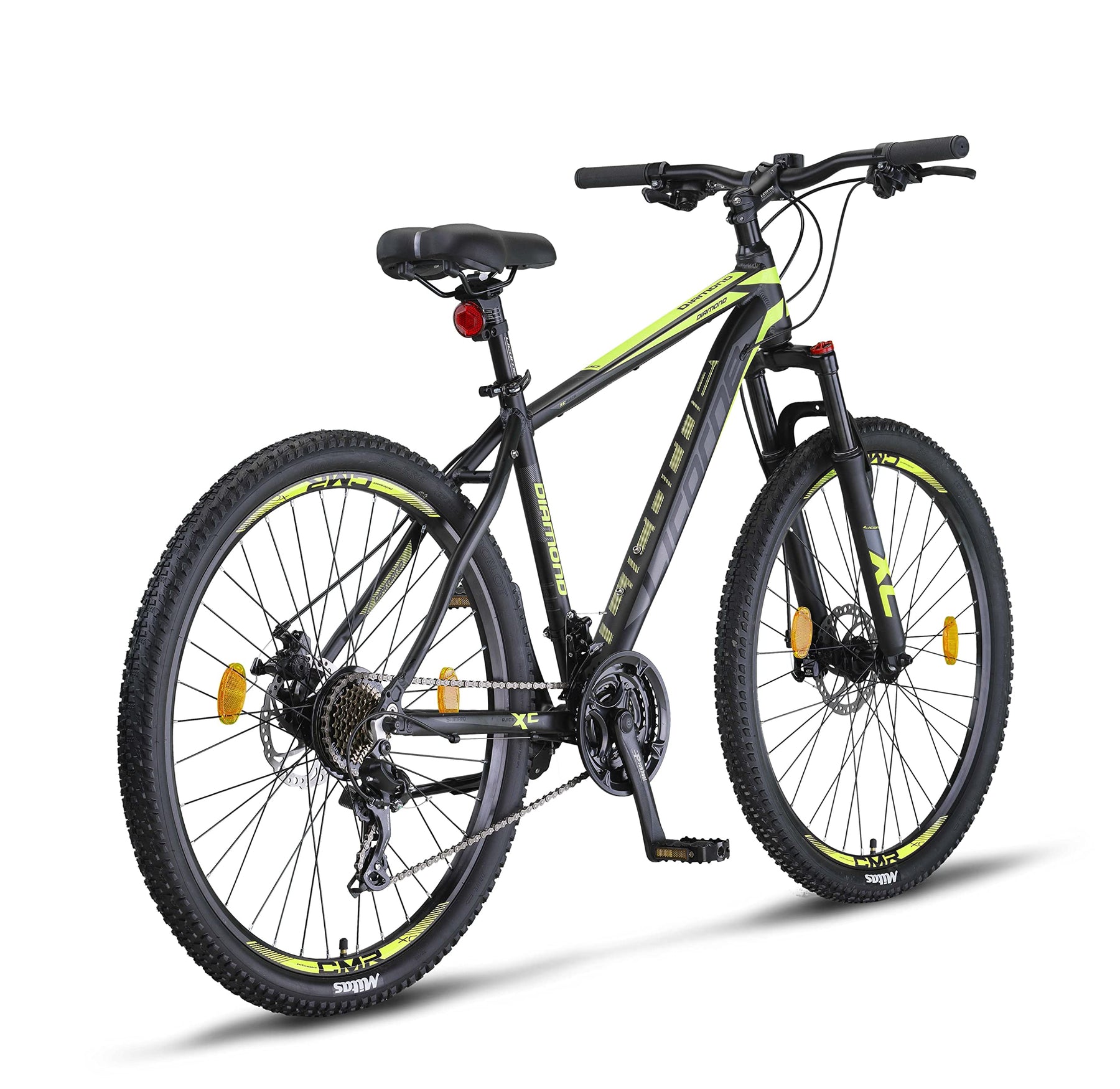 Licorne Bike Diamond Premium Mountainbike Aluminium, Fahrrad für Jungen, Mädchen, Herren und Damen - 21 Gang-Schaltung - Scheibenbremse Herrenrad – einstellbare Vordergabel (27.5, Schwarz-Lime)