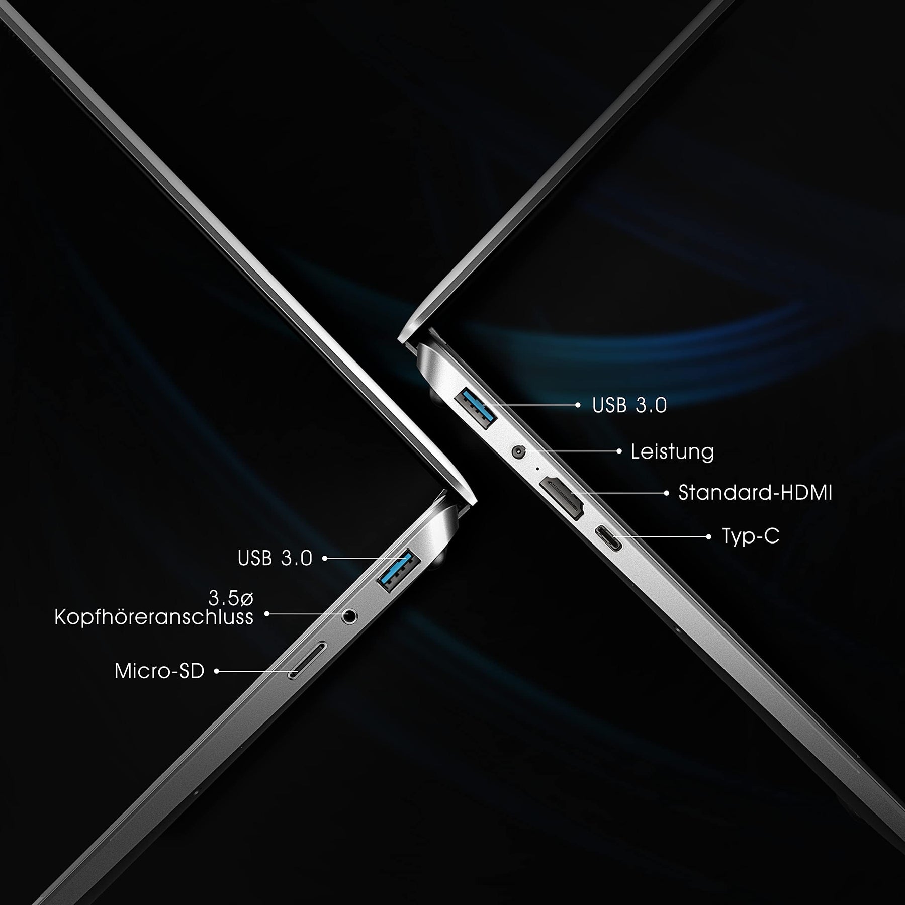 - Portabler Laptop:Dieses leichte und schlanke Notebook mit zahlreichen Schnittstellen, deutscher QWERTZ-Tastatur und geräuscharmer Wärmeableitung hält Sie im Alltag in Verbindung, egal ob Sie im Büro, in der Bibliothek oder auf einer Geschäftsreise sind: HDMI*1, Kopfhöreranschluss*1, USB 3.0*2, Typ-C*1, SD-Karte *1.