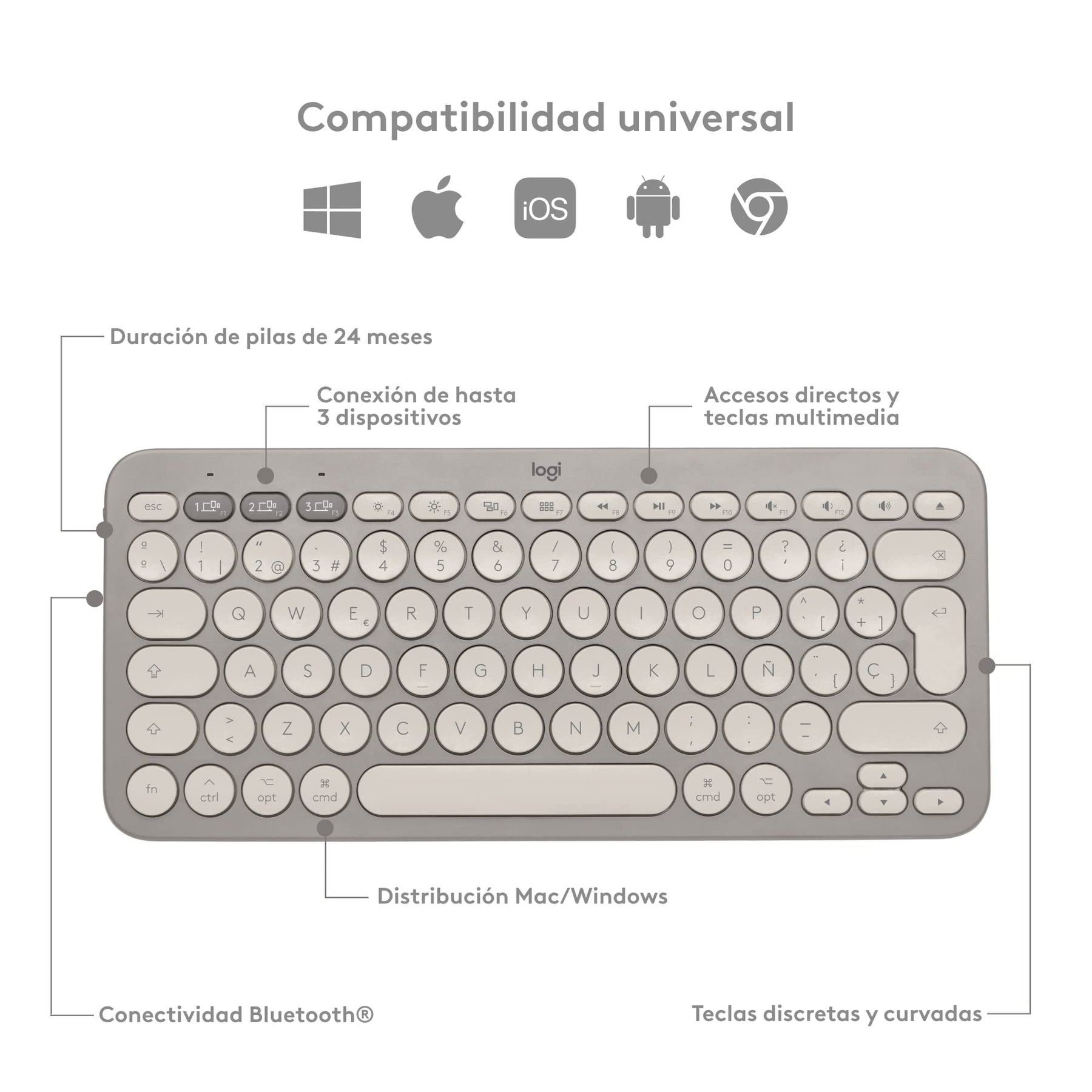 Logitech K380 Multi-Device Bluetooth Wireless Keyboard, Spanisches QWERTY - Sand